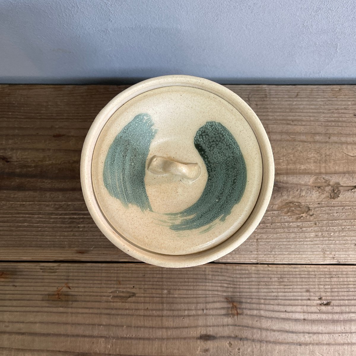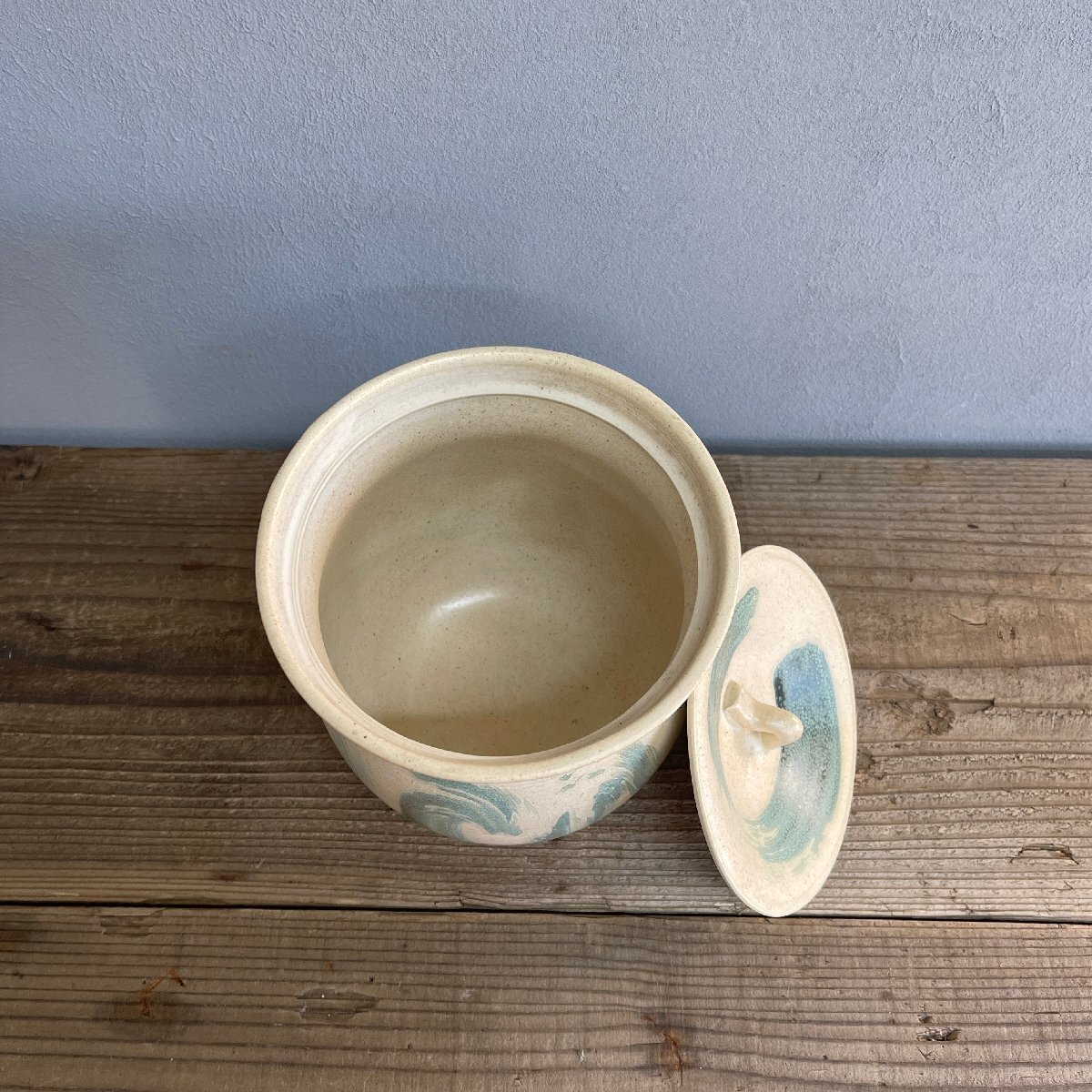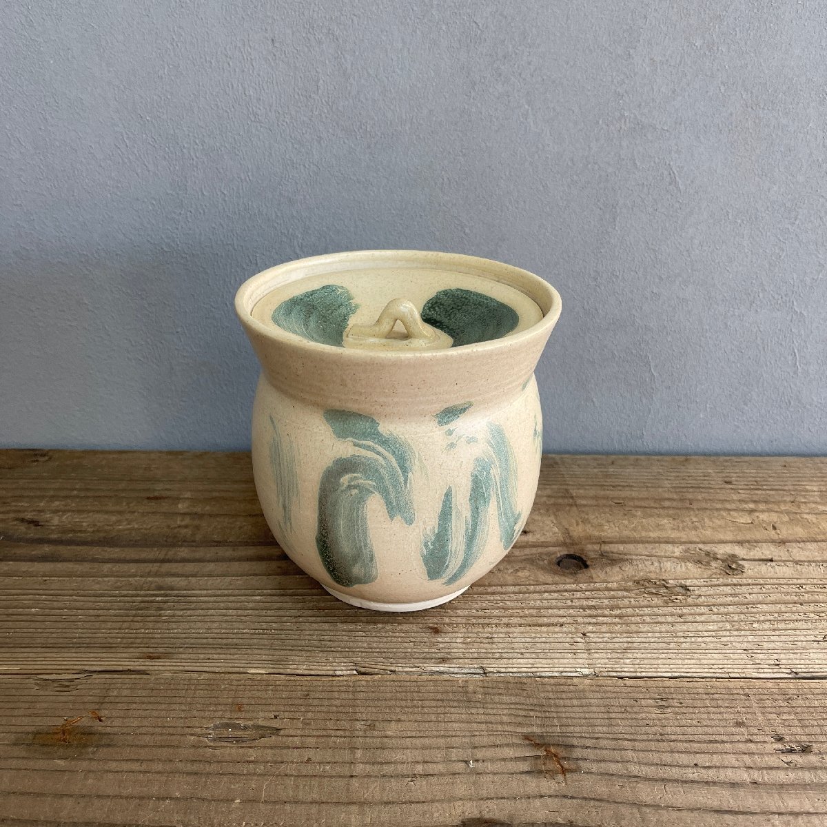 中古★壺★茶道★水入れ★茶道具★小物入れ★(白に緑の柄)