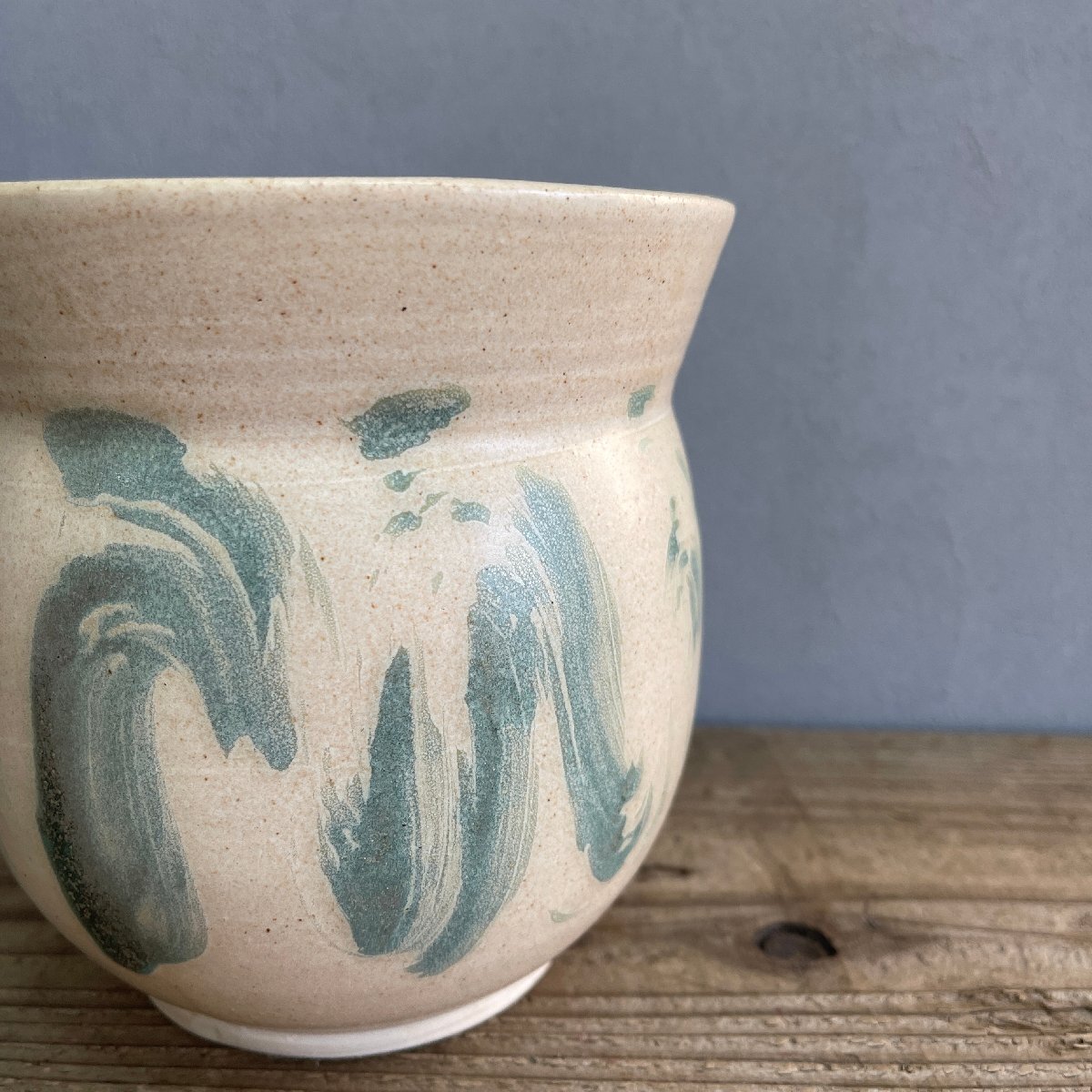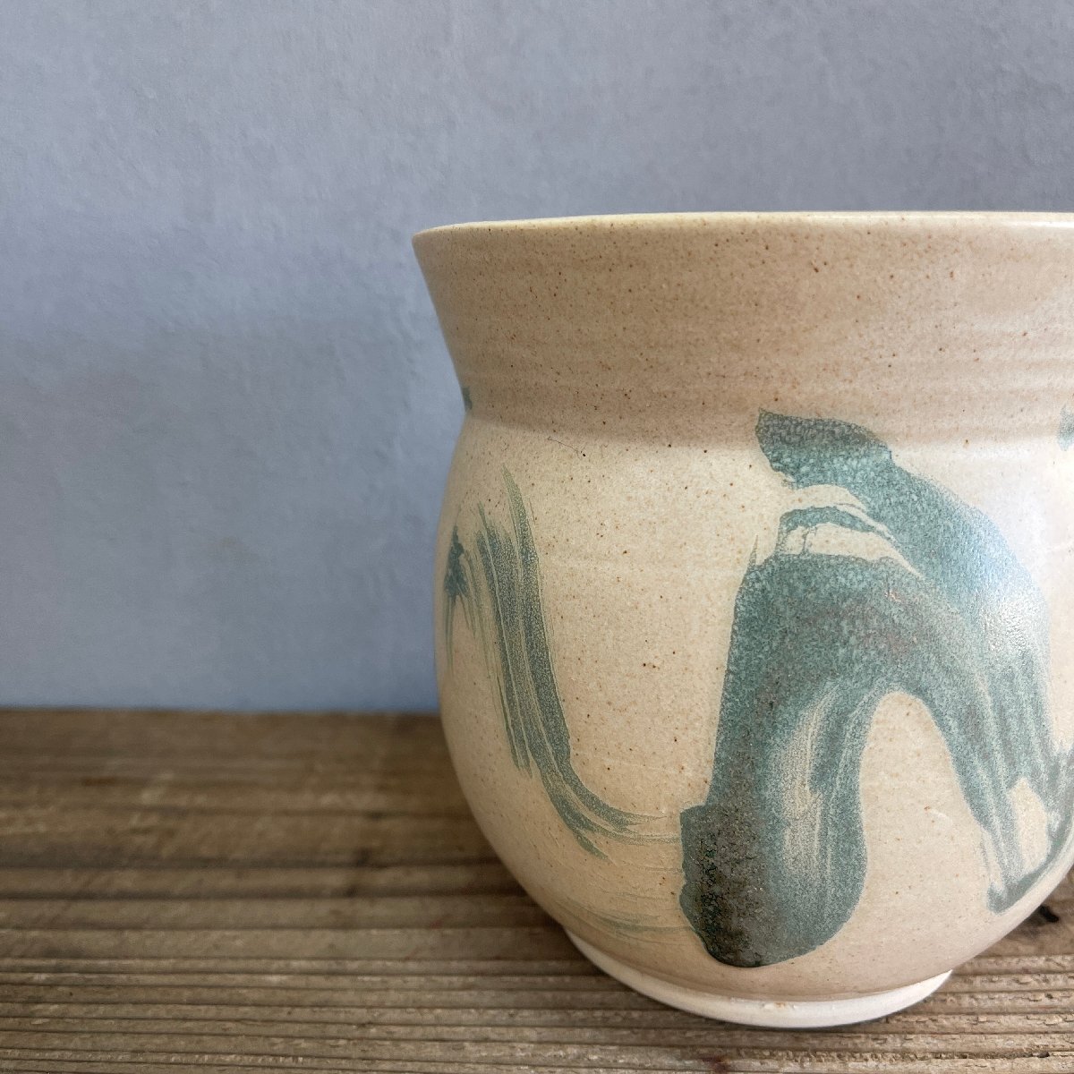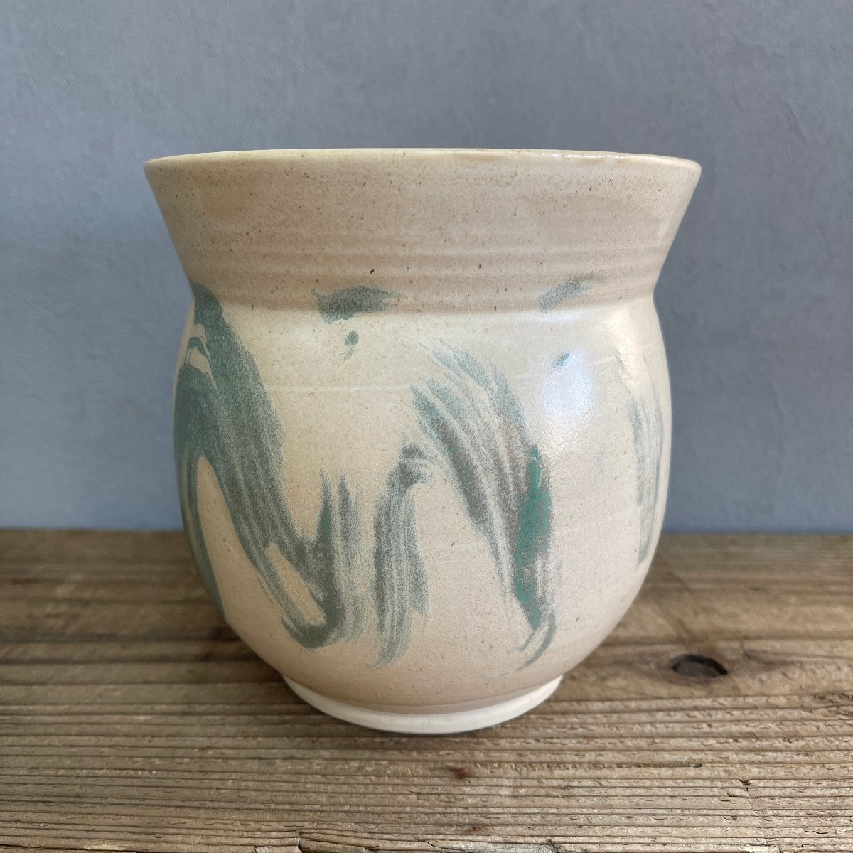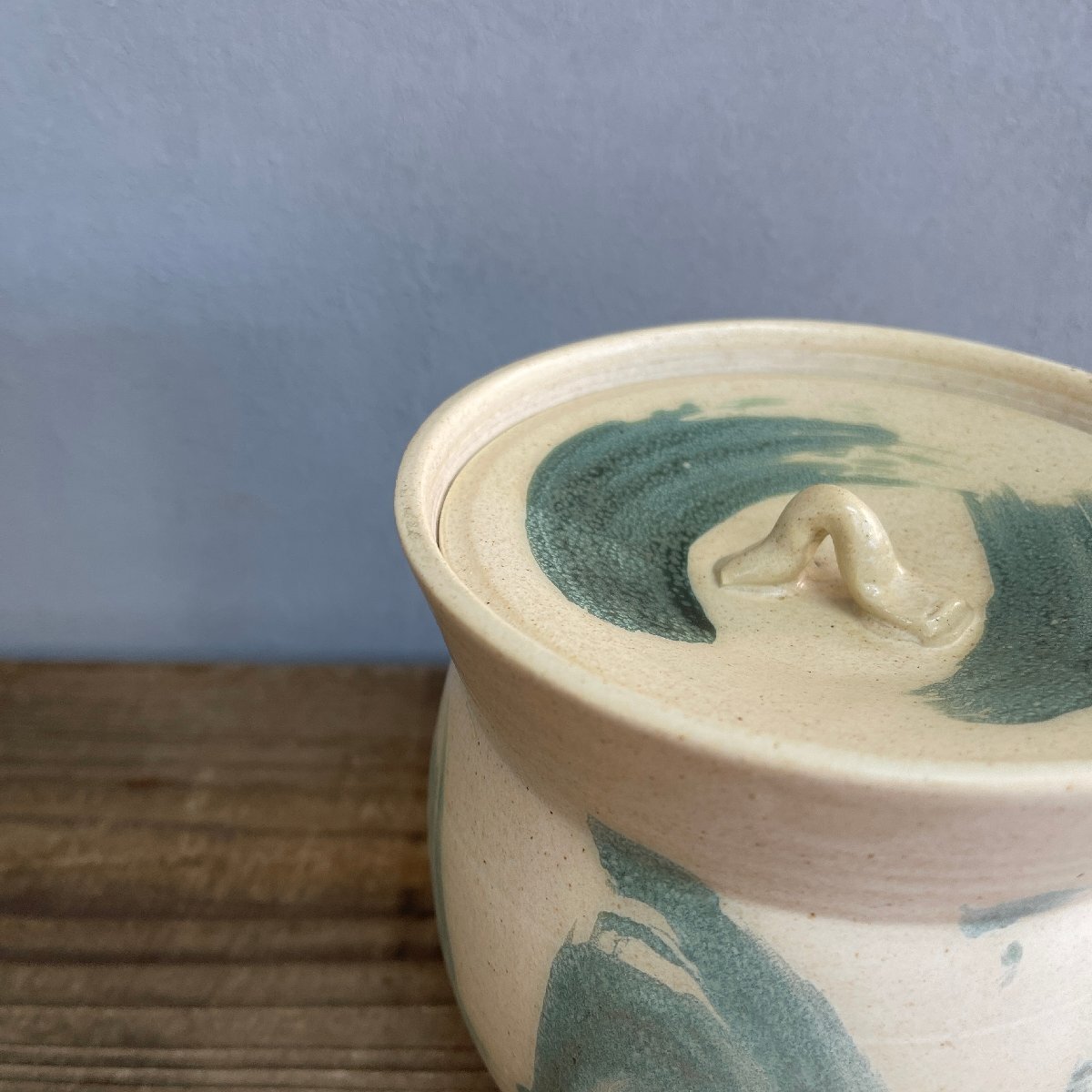 中古★壺★茶道★水入れ★茶道具★小物入れ★(白に緑の柄)