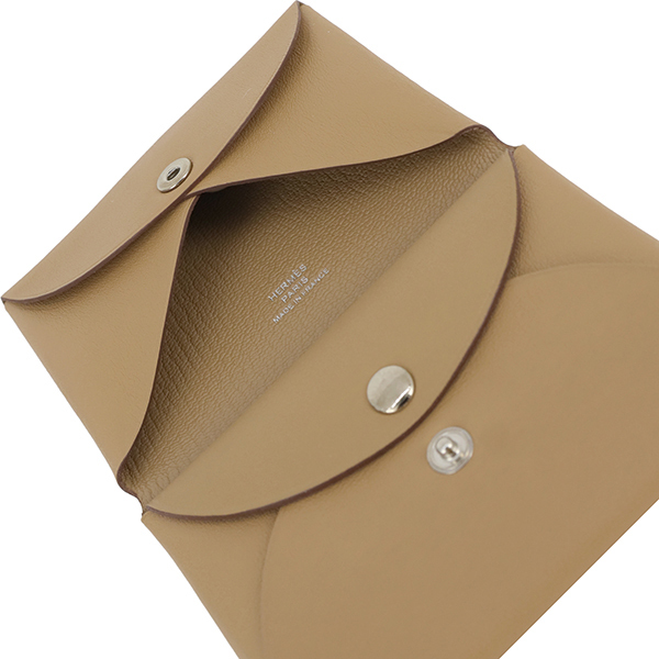 | スタッフコメント | エルメス大人気のカードケース【カルヴィ】から、ポケットが新しく追加されたモデル【デュオ】が新作登場。革で丁寧に作られ、シンプルながらも開くと両側にカードや折り畳みお札の収納が出来、さらに、小銭や名刺などがたっぷり入る作りとなっております。女性、男性へのクリスマスや誕生日プレゼントにもオススメの一品でございます。 |