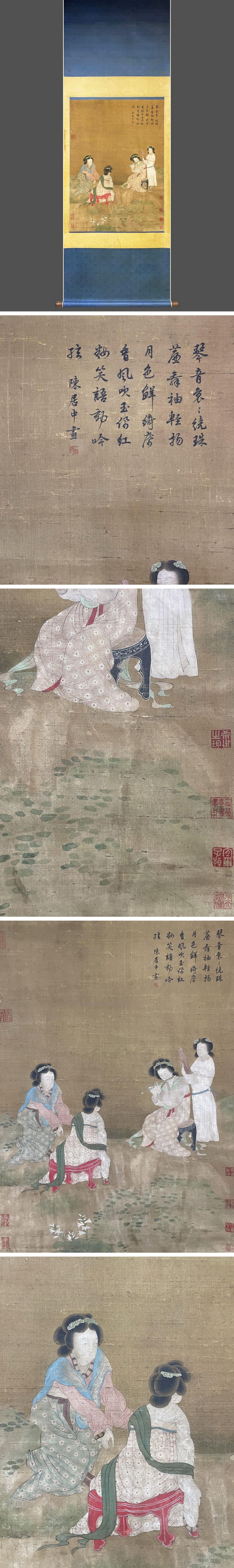 【清】中国時代画家「陳居中書」絹本「人物故事図・掛け軸」巻き物 中国画 墨寶妙品 中国書画 古美味 古美術7L9-GT