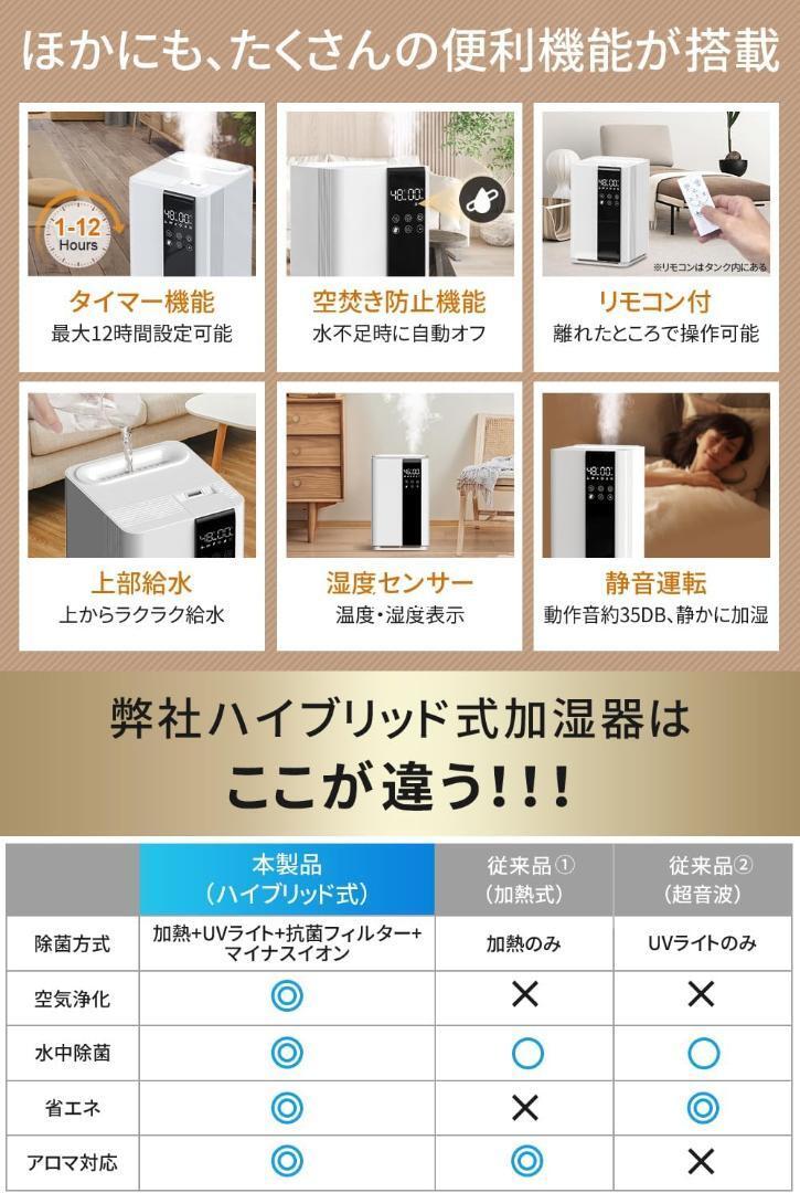 【5L大容量加湿器&空焚き防止&タイマー機能付】