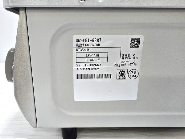【中古品】 リンナイ Rinnai ガスコンロ LPガス 右強火力 水無片面焼グリル KG35NGRR KG35NGR 2022年製 スカイグレー 〇YR-18067〇 の出品です。