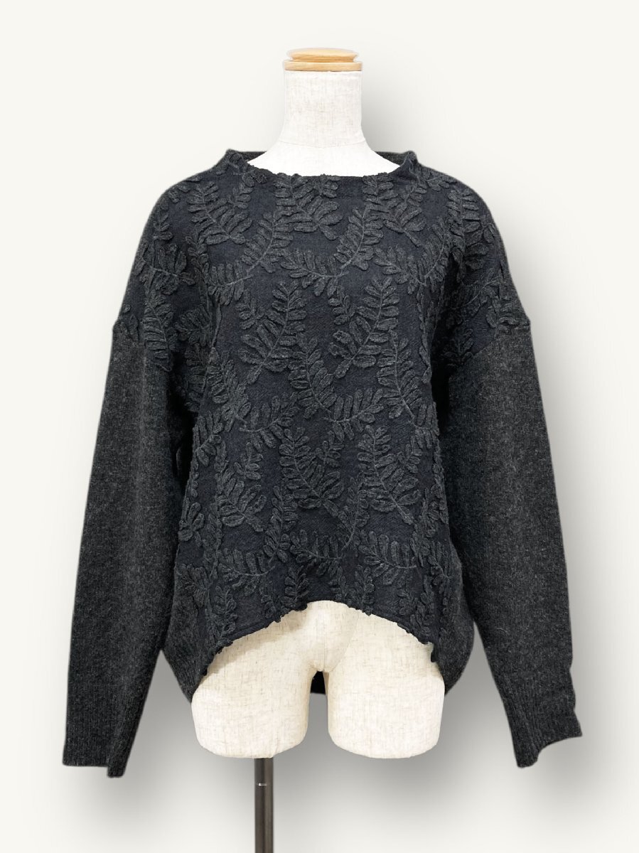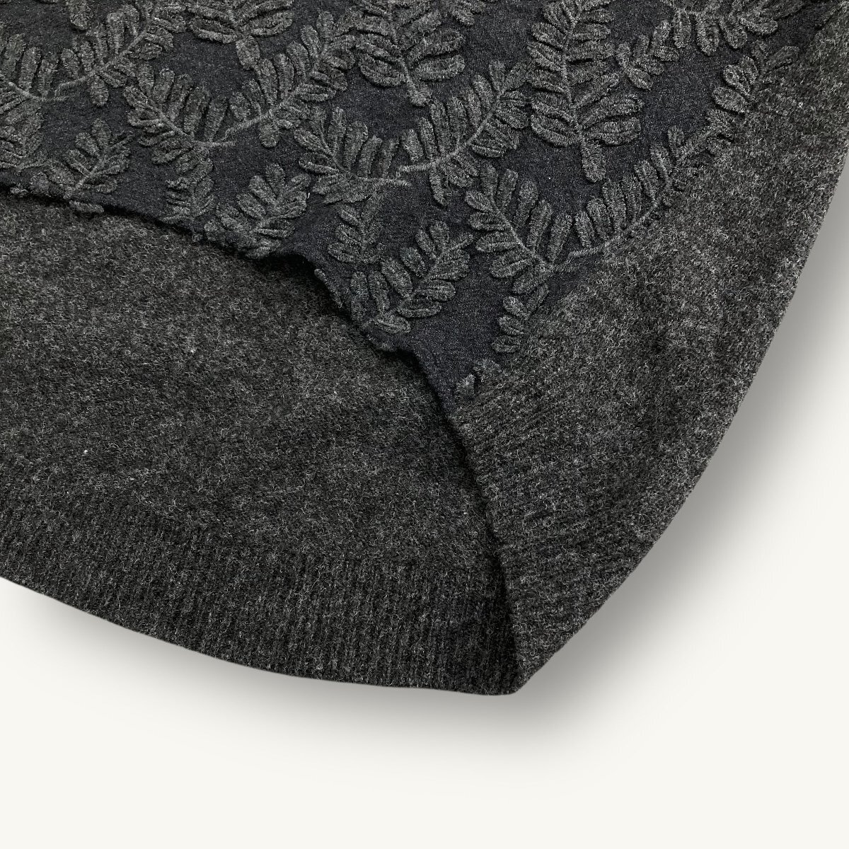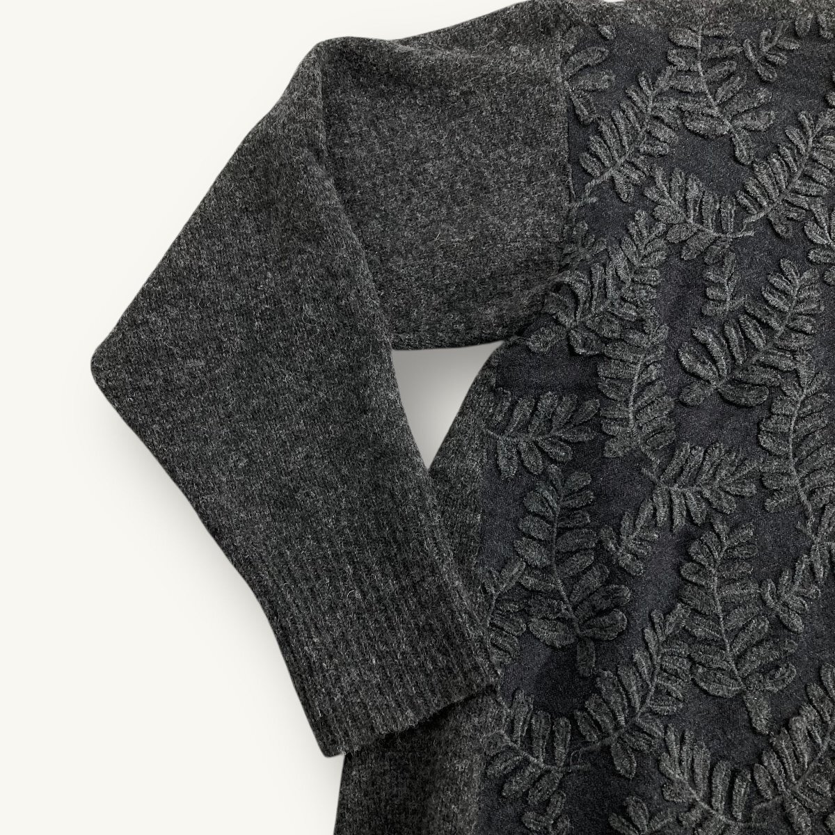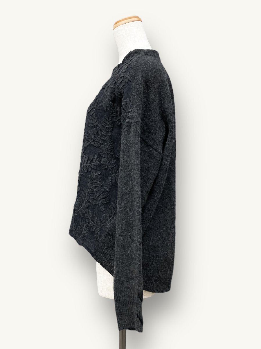 美品 BEARDSLEY/ビアズリー ウール刺繍使い長袖ニットプルオーバー F/濃灰 sc900