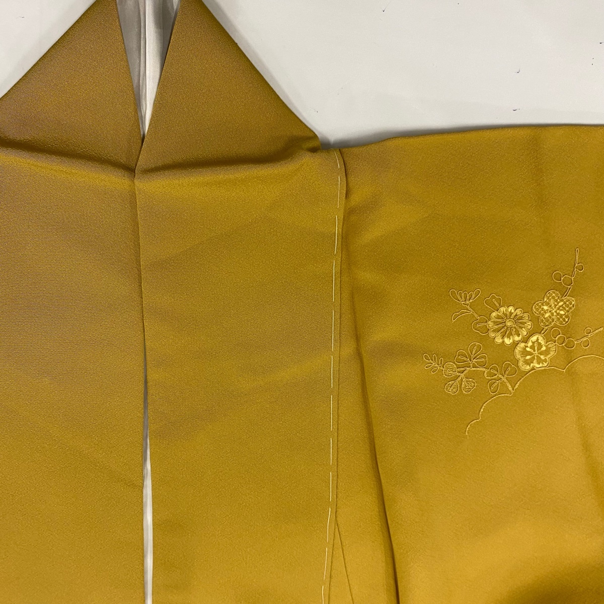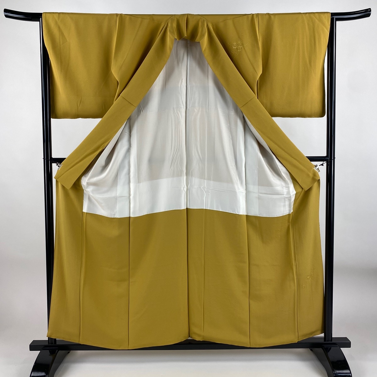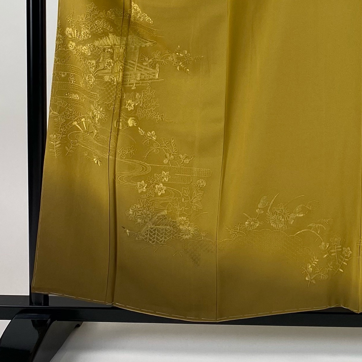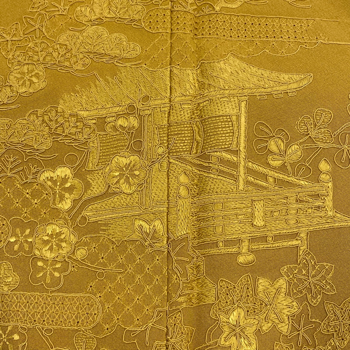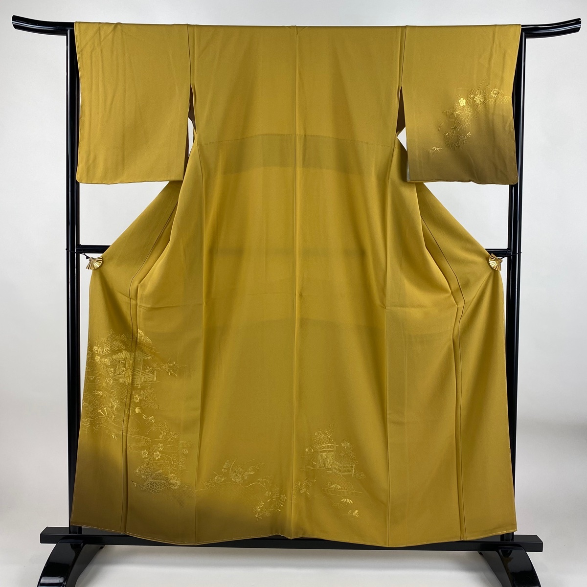 | 付下げ 美品 秀品 建物 松梅 刺繍 山吹茶色 袷 身丈156 裄丈65 M 正絹 【中古】 |