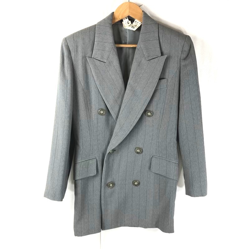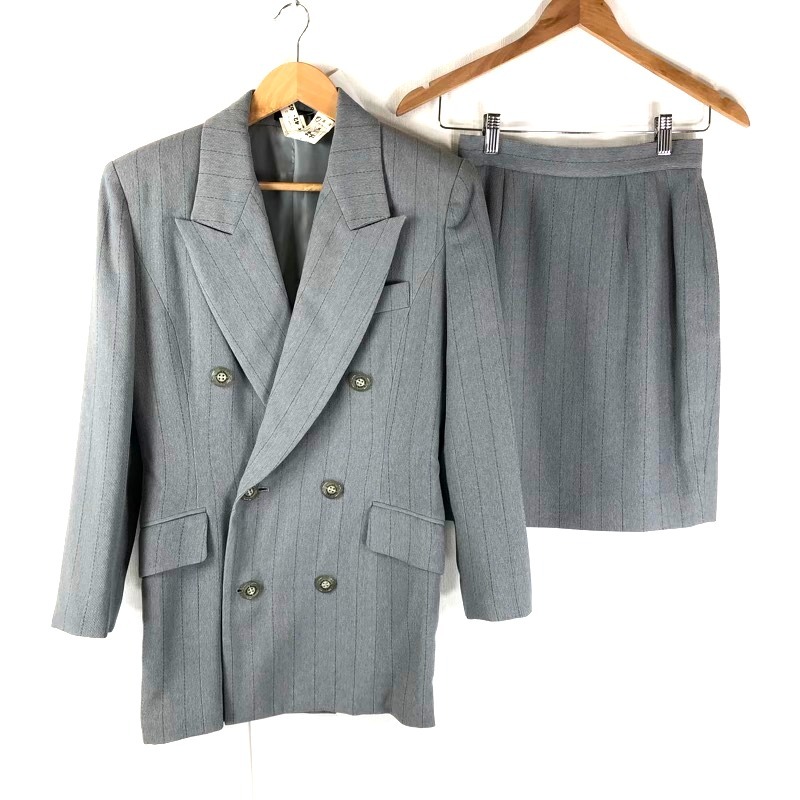 | 商品名 | ピンキーアンドダイアン Pinky&Dianne セットアップ ジャケット スカート スーツ ストライプ ロゴボタン ダブルボタン スリット ポケット 肩パッド グレー Mサイズ 935472 |