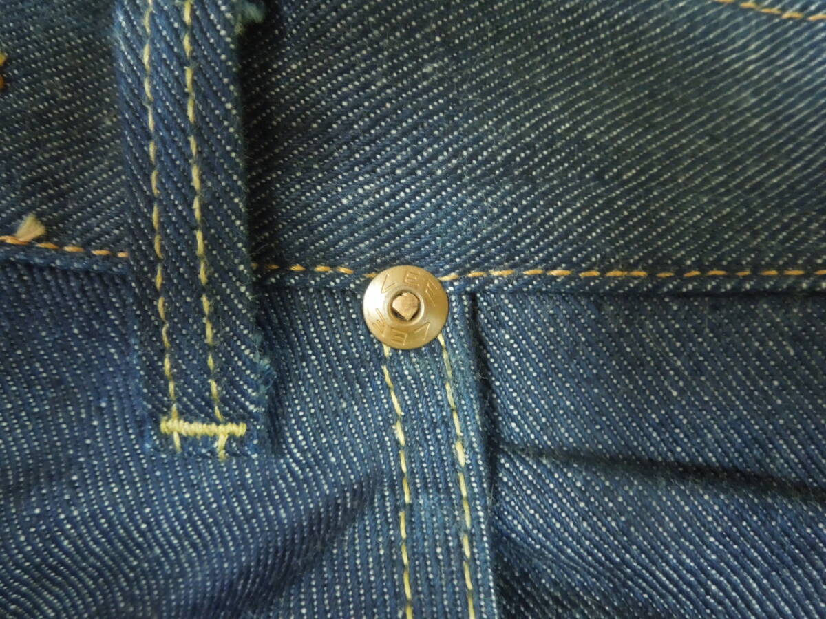 【仕様】ユニオンチケット、グリッパージッパー、当て布、センター赤タグ、5本ループ、両耳、裾はチェーンステッチ、股リベット