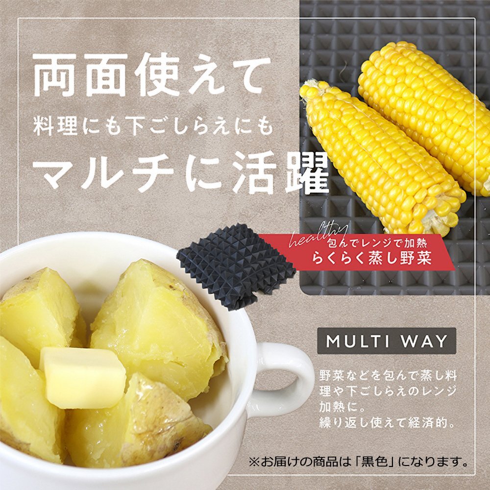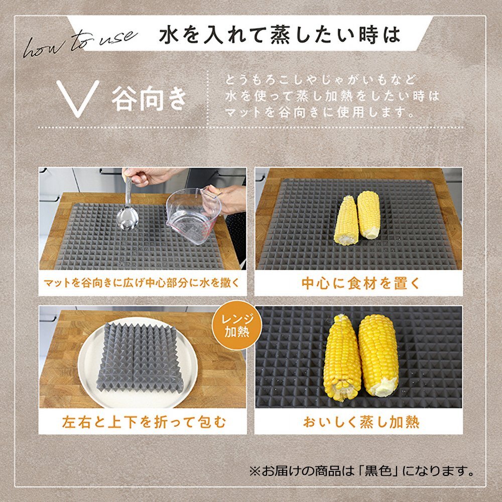 マットを谷向きにして食材を包んで電子レンジで加熱。