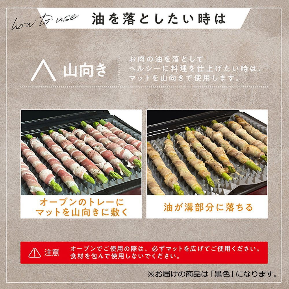 ※オーブンでご使用の際は必ずマットを広げてご使用ください。食材を包んで使用しないでください。