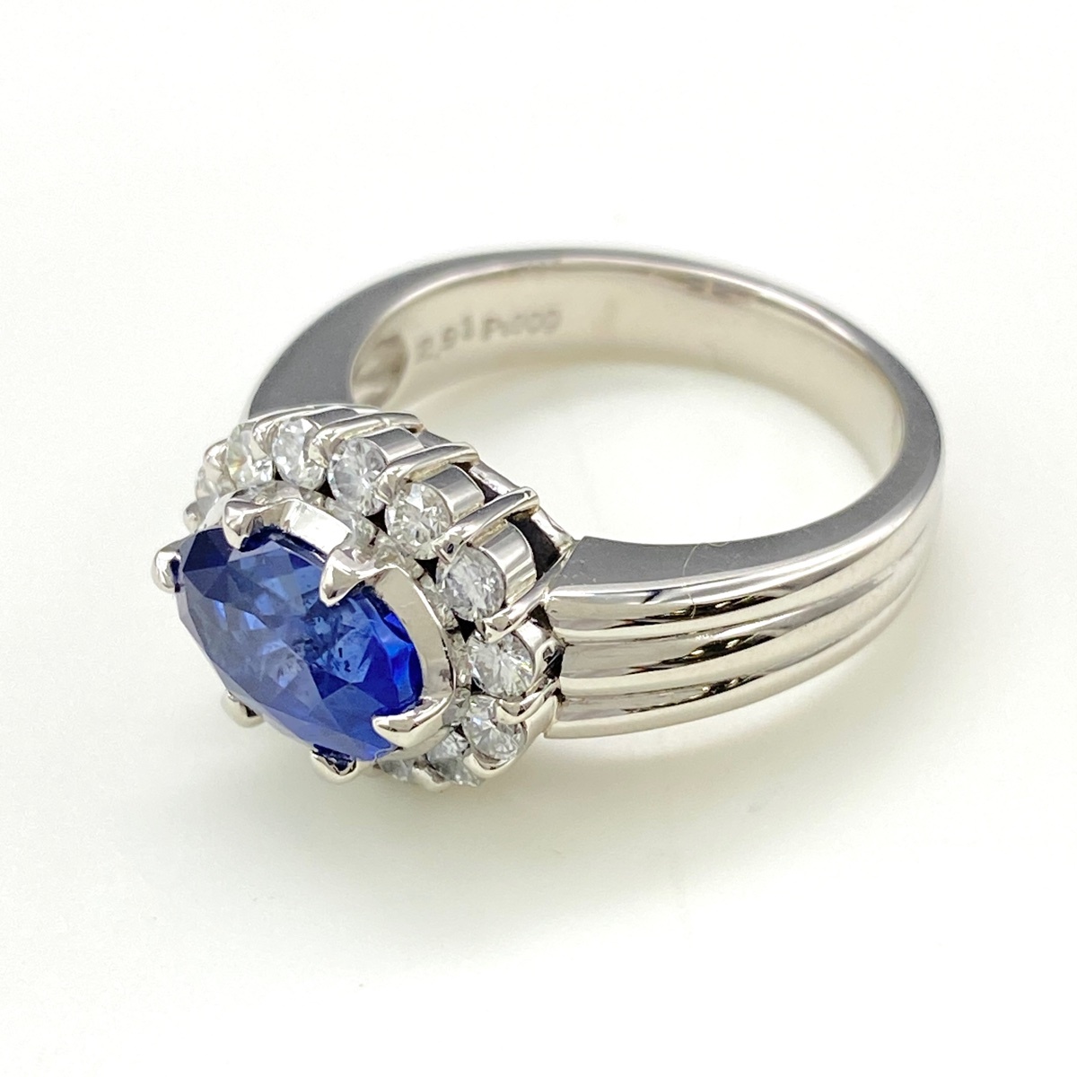 実寸サイズ| 約13号 | リング最大幅 | 約11.1mm | リング最小幅 | 約3.3mm | リング厚さ | 約7.7mm | 素材 | Pt900、サファイア、ダイヤモンド | コメント | サファイア:2.91ct、メレダイヤ:0.55ct | 中古品の為、若干のキズや汚れがございます。 付属品 | 鑑別書 | |