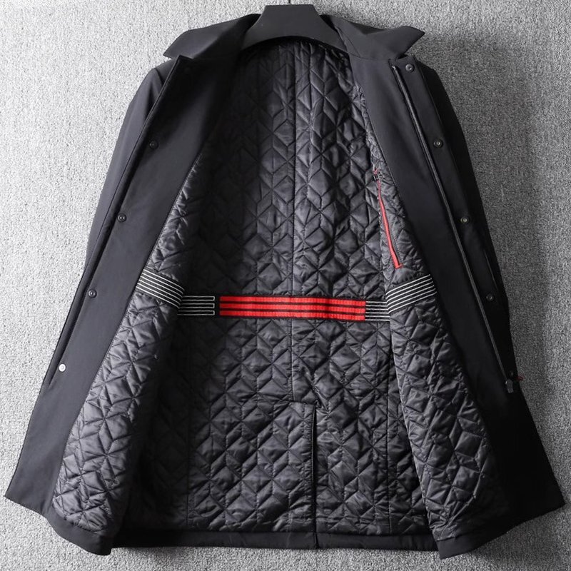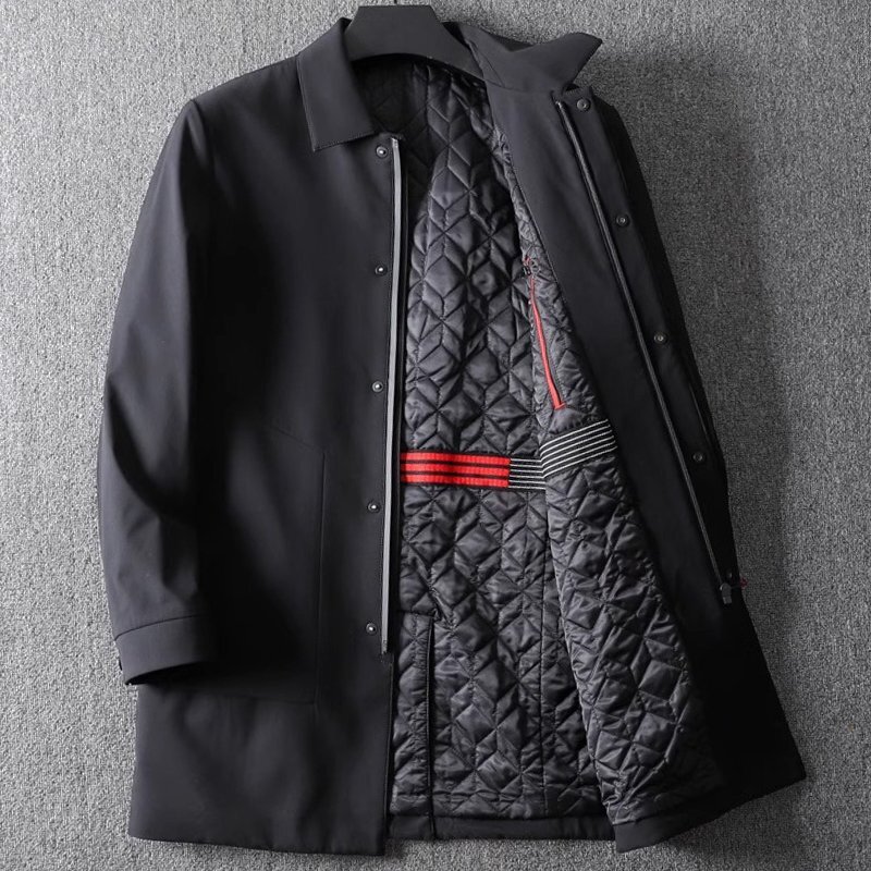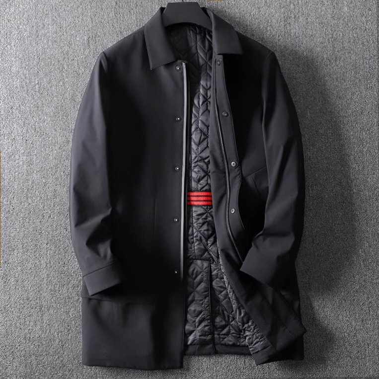 新品 国内未販売 キルティングコート メンズ 紳士 ミディアム丈 トレンチコート 防寒 秋冬 中綿ジャケット ファスナーポケット 黒 T8010-XL