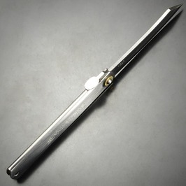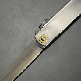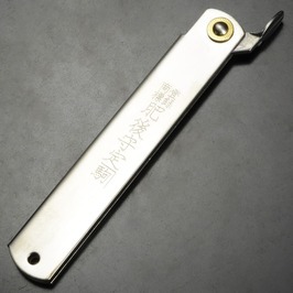 肥後守は、明治27年創業の永尾駒製作所の製造販売する、ロック機構を持たない国産ナイフです。肥後と言っても、熊本県(肥後国)で生産されているわけではなく、兵庫県三木で生産されています。日本では珍しい折りたたみ式のナイフは、替刃式のカッターナイフのなかった時代、日本に広く普及していました。材料は安来鋼青紙などで安く切れ味抜群で携帯にも便利な手造り鍛造。明治37年頃『肥後守』の名称を商標登録し四代目に渡り造り続けられています。