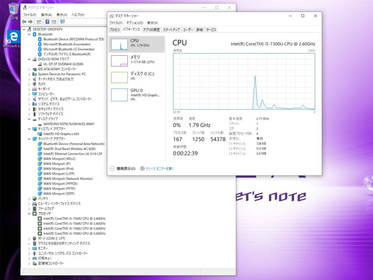 | Panasonic Let's note LX6 CF-LX6RDGVS/Core i5-7300U/8GBメモリ/M.2 SSD 256GB/Full HD 14.0TFT/無線LAN/Windows10 Pro 64bit #1006 | ||
