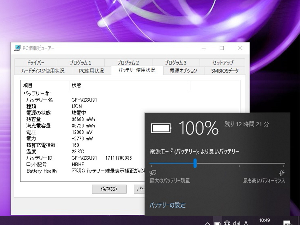 | 商品説明 | パナソニック「Panasonic Let's note LX6」 CF-LX6RDGVS 14インチ液晶搭載ながら、13インチクラスのコンパクトボディ。 インテル第7世代 Core i5-7300Uプロセッサーを搭載。 M.2 SSD採用モデルとなります。 Windows10 Pro 64ビット版を再インストール済ですので、 すぐにお使いいただけます。 累積使用時間は11210時間となっています。 【仕様】 OS Windows10 Pro 64ビット 正規版 プロセッサー インテル Core i5-7300U 2.60GHz(最大3.50GHz) メモリー 8GB(オンボード 拡張スロットなし) 表示方式 14型ワイド(16:9)Full HD TFTカラー液晶 (1920 x 1080 ドット) グラフィックアクセラレーター インテル HD グラフィックス620(CPUに内蔵) ストレージ M.2 SSD 256GB 光学ドライブ 非搭載 通信機能 IEEE802.11a/b/g/n/ac 準拠 Bluetooth v4.1 モニタポート ミニD-Sub15ピン×1、HDMI×1 USBポート USB3.0×2(左側面)、USB2.0×1(右側面) 外形寸法 幅333mm×奥行225.6mm×高さ24.5mm 突起部除く 質量 約1.19kg ■状 態■ Windows10 Pro 64ビット 正規版を再インストールしています。(ライセンス認証済) デジタルライセンス認証ですので、OSのシールのみ貼付されています。 デバイスマネージャーには不明なデバイスは無く、正常に稼動しております。 ハードディスクにリカバリ領域がありますので、初期状態に復帰できます。 BIOSメニュー内にある「Recovery Partition」を実行するとリカバリ処理が始まります。 ※リカバリディスクは付属しません。 BIOS起動、変更できました。 キーボードの入力できました。 初期設定に使用したキーには反応しないキーはありませんでしたが、 全てのキーは確認していません。 タッチパッドの操作できました。 クリックボタンも使用可能です。 無線LANにてインターネット接続できました。 バッテリーは充電・起動可能ですが、バッテリーのみでの駆動時間は計っていません。 商品撮影時、100%充電残量で12時間21分使用可能と出ていました。 【バッテリ】 動作確認時点でのバッテリー情報(参考): ・完全充電時の容量:36720mWh ・積算充電指数:163 ※上記バッテリー情報は、使用時間・バッテリー性能を保証するものではございません。 ※ACアダプターは付属しませんので御用意下さい。 簡単に清掃しておりますが、筐体にキズ・汚れなどがございます。 目視で確認したところでは、液晶にライン抜けなどの症状は無いようです。 画面等に使用上、支障の無い程度の傷がある場合がございます。 ※Officeソフトはインストールされていません。 ※プリインストールソフトのユーザー登録は未確認ですので、不問にてお願いします。 ※即決落札の場合でも、発送は通常終了の翌日月曜日以降になります。 ※発送までの取り置きは可能ですが、早期発送はできませんので、御注意下さい。 ※現状では動作に問題ないようですが、古い製品ですので、商品到着時点で 起動しない等の初期不良を除き、ノークレーム・ノーリターンと致します。 使用開始後に発生した動作不良には対応できませんので、御了承下さい。 ■この商品に対する注意事項 液晶のドット抜け及び液晶の色むらは、液晶の構造上起こる場合がございます。 初期不良対象外になり、交換致しかねますので、予めご了承ください。 ■付属品 無し ■発送方法■ 佐川急便で発送いたします。 ■お支払い方法■ ヤフー簡単決済 出来るだけ良い物を、出来るだけ良心的な価格で 提供出来ますよう、これからも努力して参ります。 アイテムはドシドシ更新して参りますので、気に入って頂けましたら、 当方のIDをオークションアラートに追加して頂けますと幸いでございます。 最後まで御覧頂きましてありがとうございました。 | |