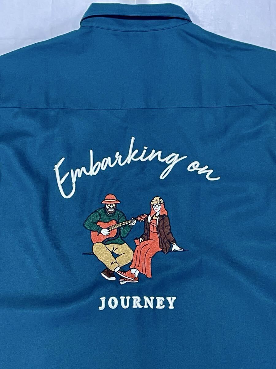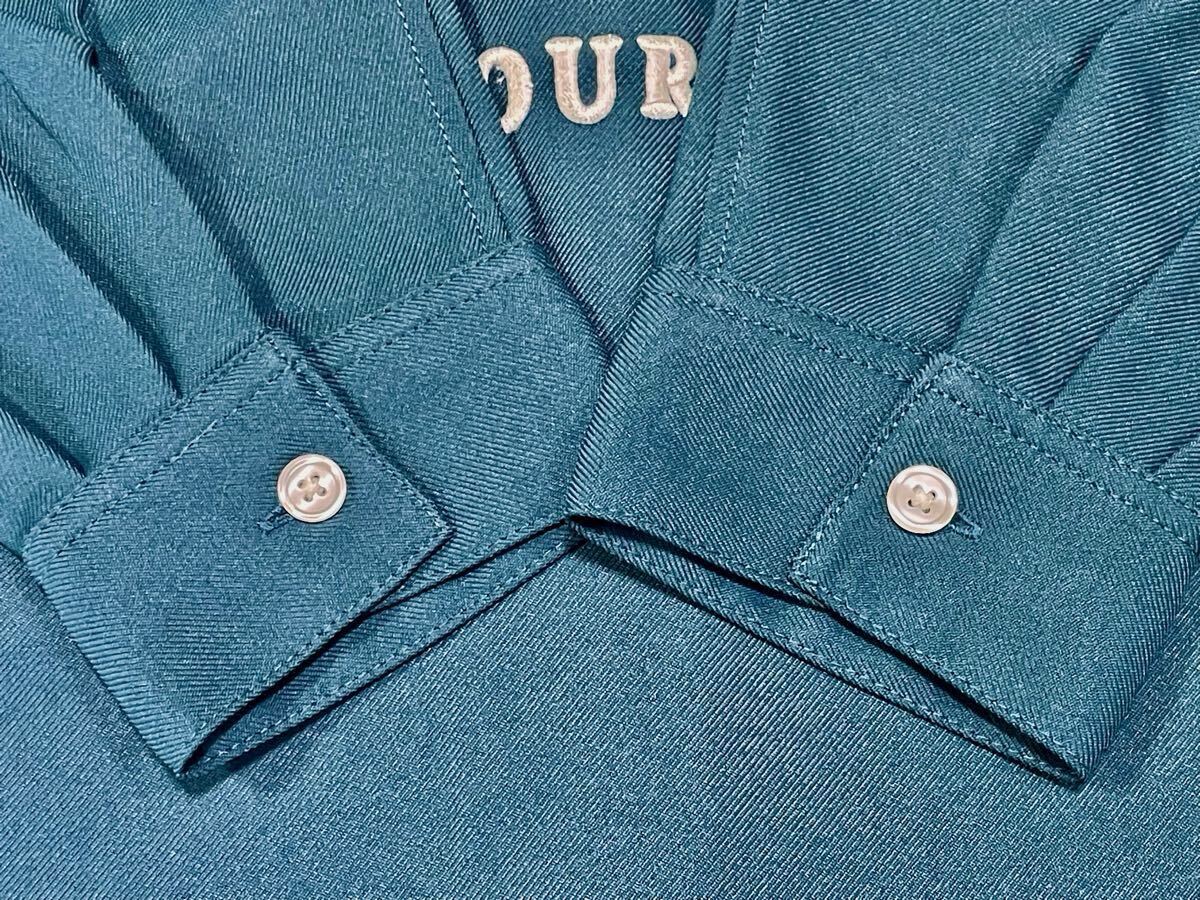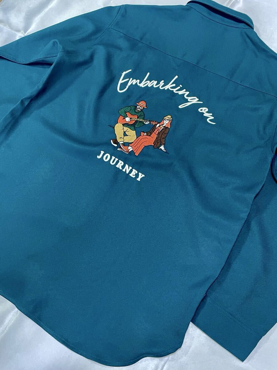 BACK NUMBER EST.1980 バックナンバー 背面刺繍 長袖ワークシャツ メンズMサイズ グリーン系 (株)ライトオン 刺繍 ボーリングシャツ