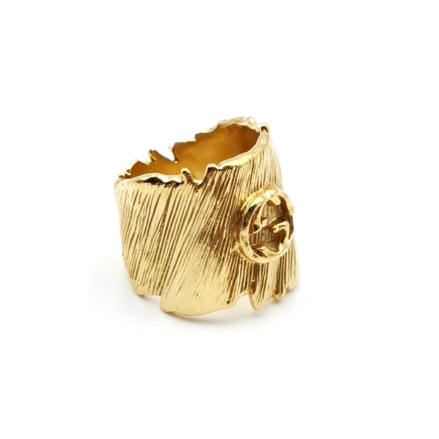 送料無料 超美品 グッチ GUCCI 指輪 リング インターロッキングG 伊製 イタリア製 15号 ゴールド系 レディース