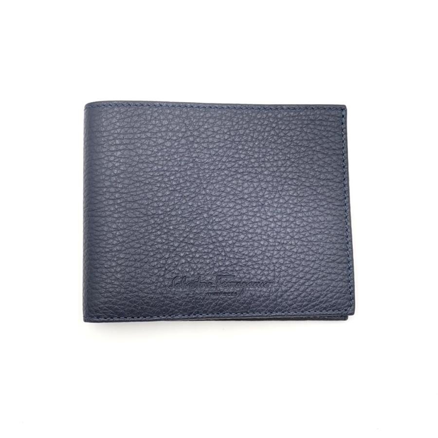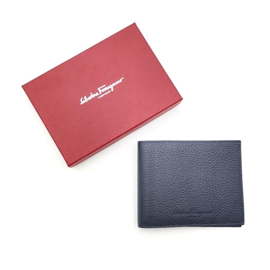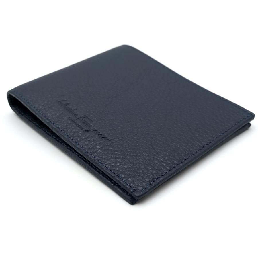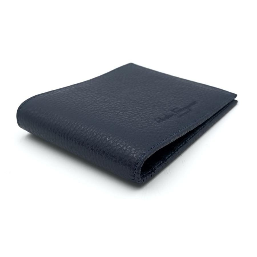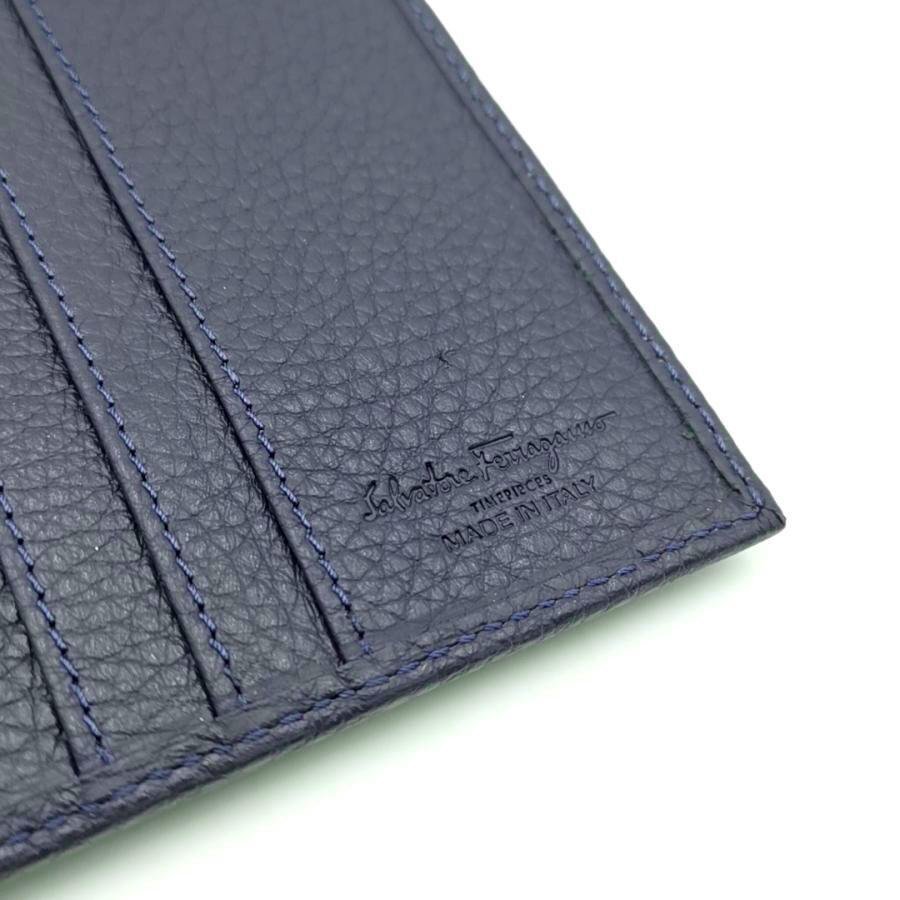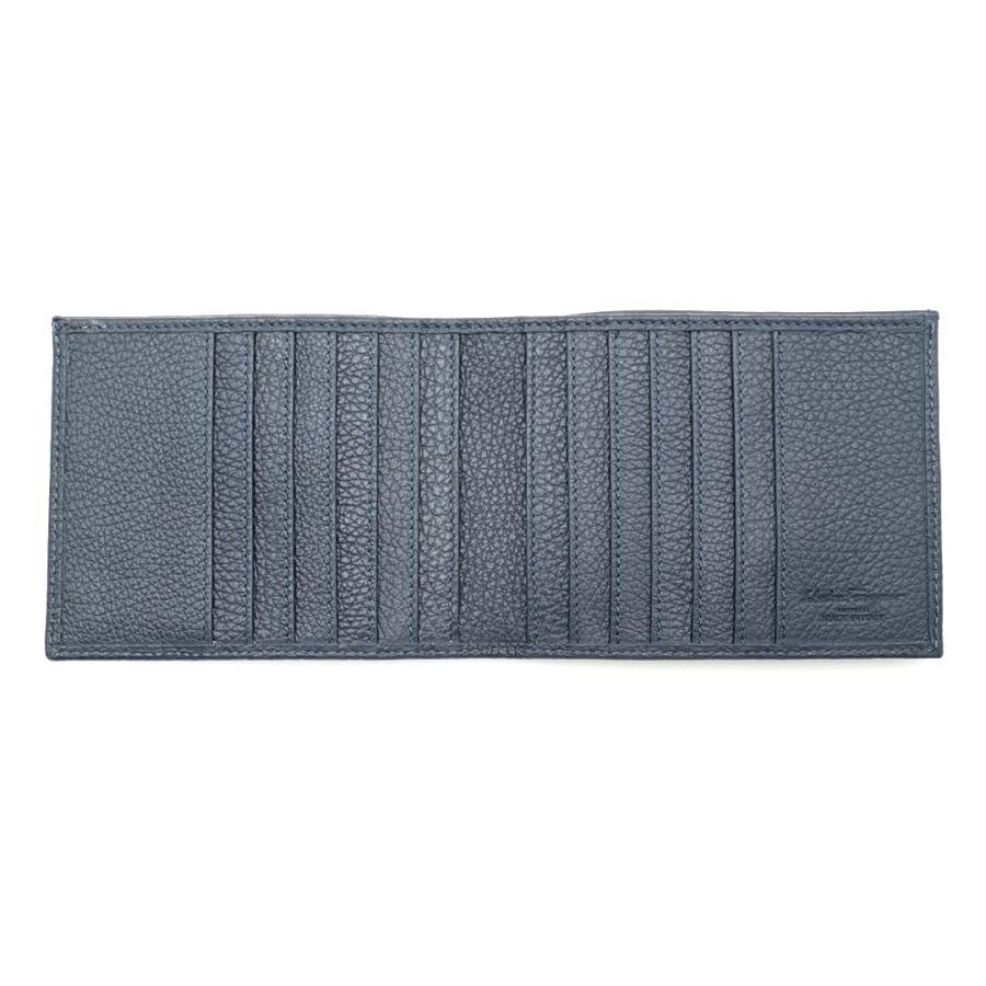 ・送料無料 超美品 サルヴァトーレフェラガモ Salvatore Ferragamo 財布 札入れ 二つ折り ミディアムウォレット レザー 本革 伊製 イタリア製 紺 ネイビー系 メンズ レディース