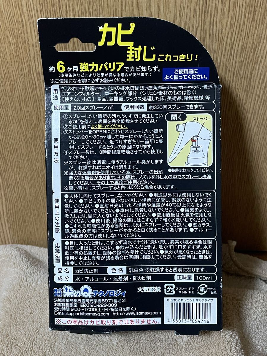 【特徴:】非塩素系のため、安心・安全に使用できます。カビを落とした後に使用することで、約6ヶ月間の抗菌効果が持続します。