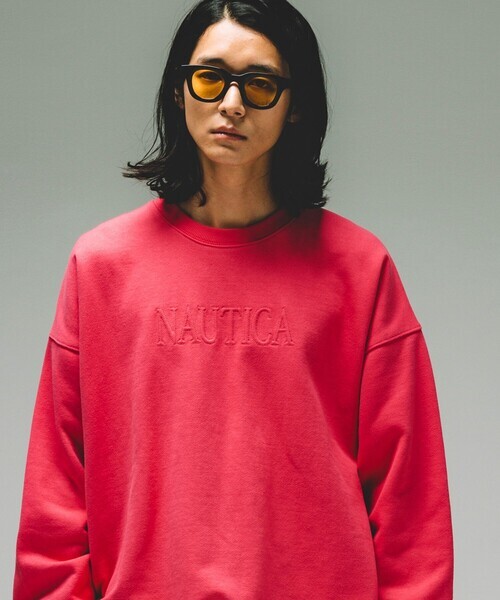 参考商品名:NAUTICA/ノーティカ Fluorescence Fabric Stitch Small Logo Crewneck Sweatshirt/フルオレセントファブリック ロゴ クルーネッ