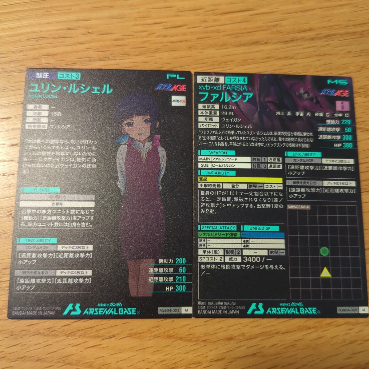 機動戦士ガンダムAGE アーセナルベース カード ファルシア FQB04-009 ユリン・ルシェル FQB04-023 Mレア ガンダムエイジ