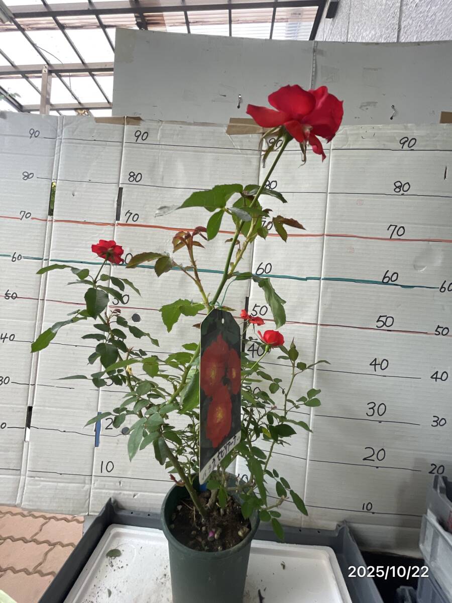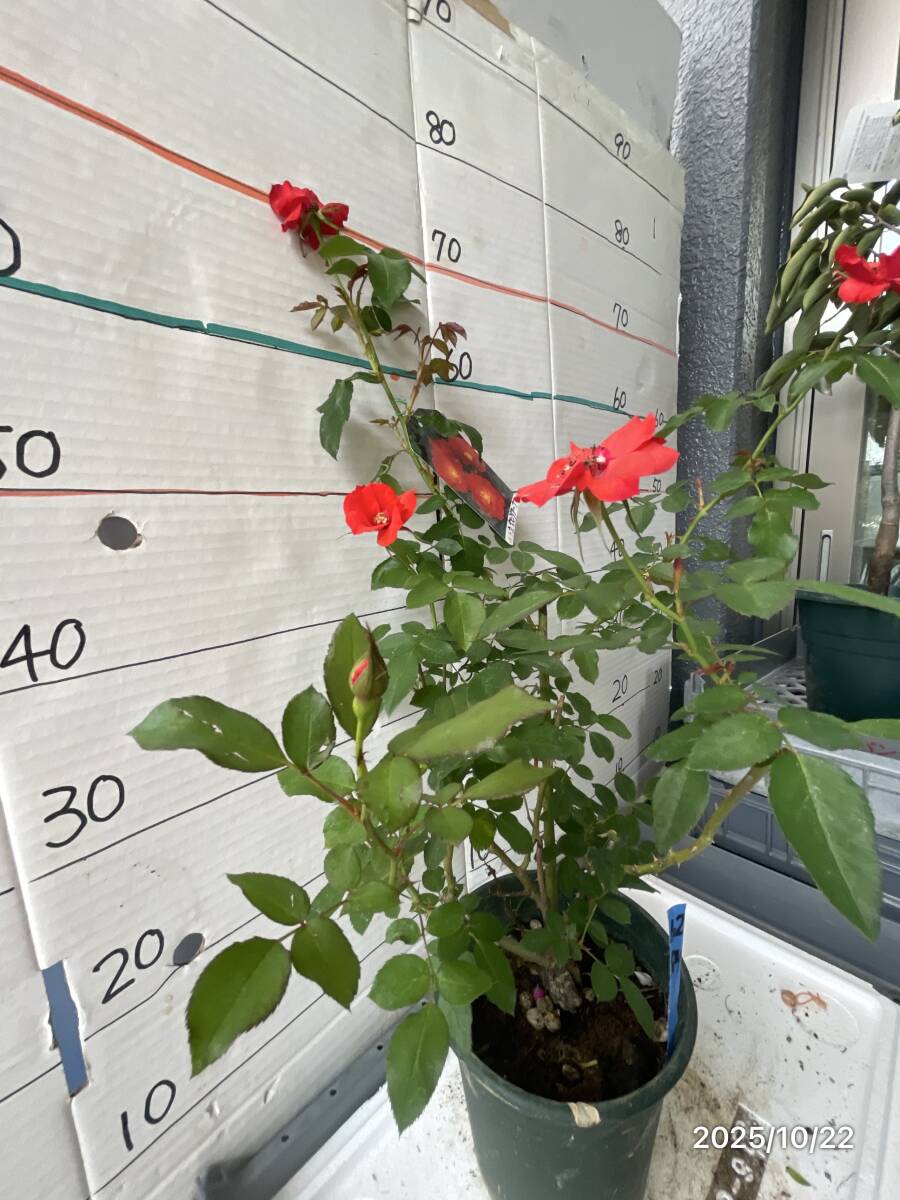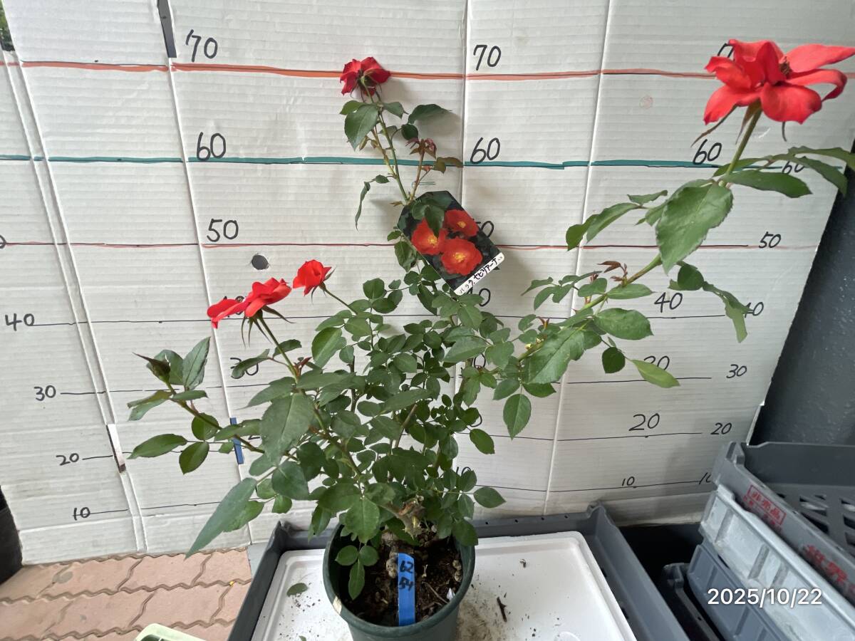 濃朱赤色の丸弁高芯咲きから平咲きになり、花持ちがよいです。極めて強健で、強い日差しにも冬の寒さにも十分に耐えてくれます。耐病性も強く、大きなブッシュに仕立て、まとまりの良い修景バラとしても扱えます。株の下から上まで株を覆うように花が咲くさまは見事です。深い剪定にも耐え、花付きがよい。庭に花を絶やせたくないかたには特にお勧めです) 鉢又はポットのサイズ 約 6 号 鉢底からの高さ 約 cm↑↓ お届けは 画像同様商品 1 鉢(ポット)になります |