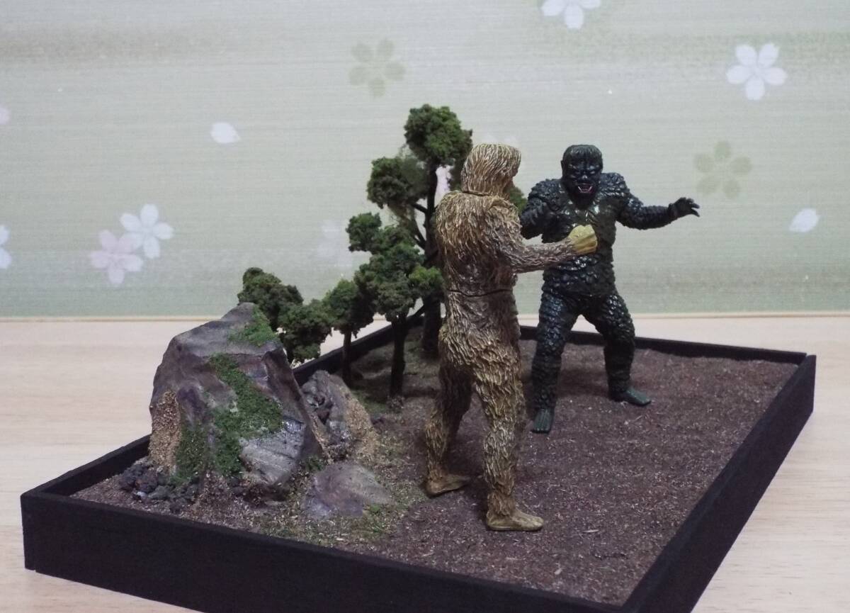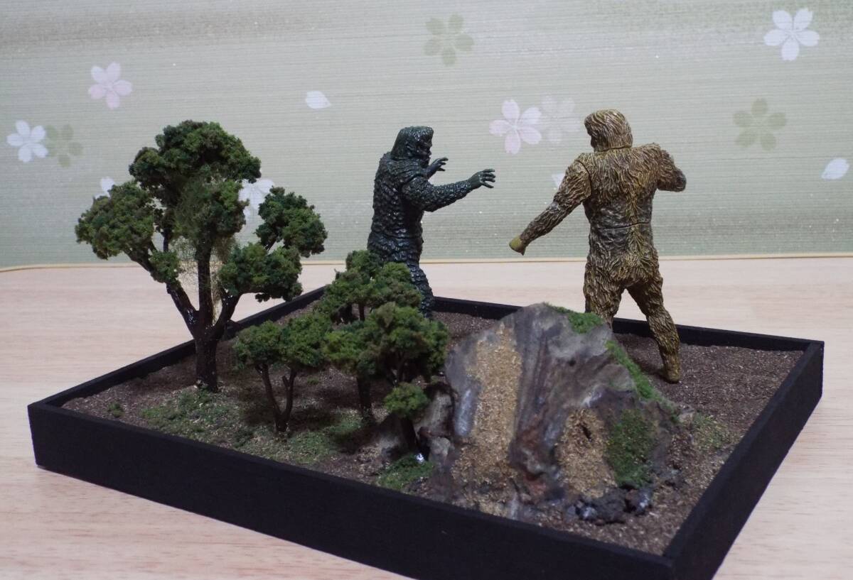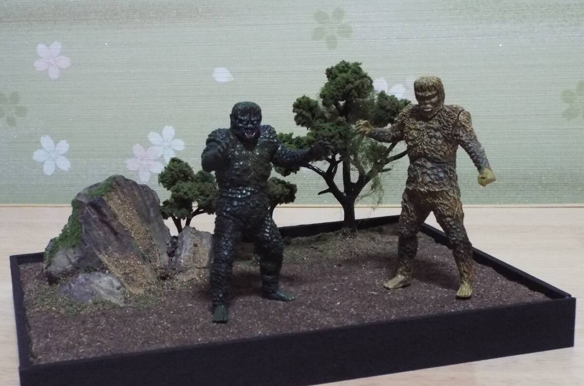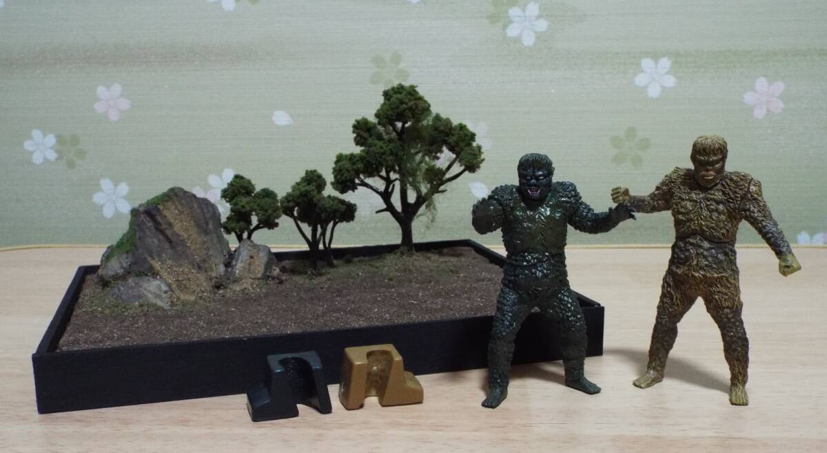 自作ジオラマ HGサイズ 「サンダ対ガイラ」 情景イメージ 完成品 フィギュア付き