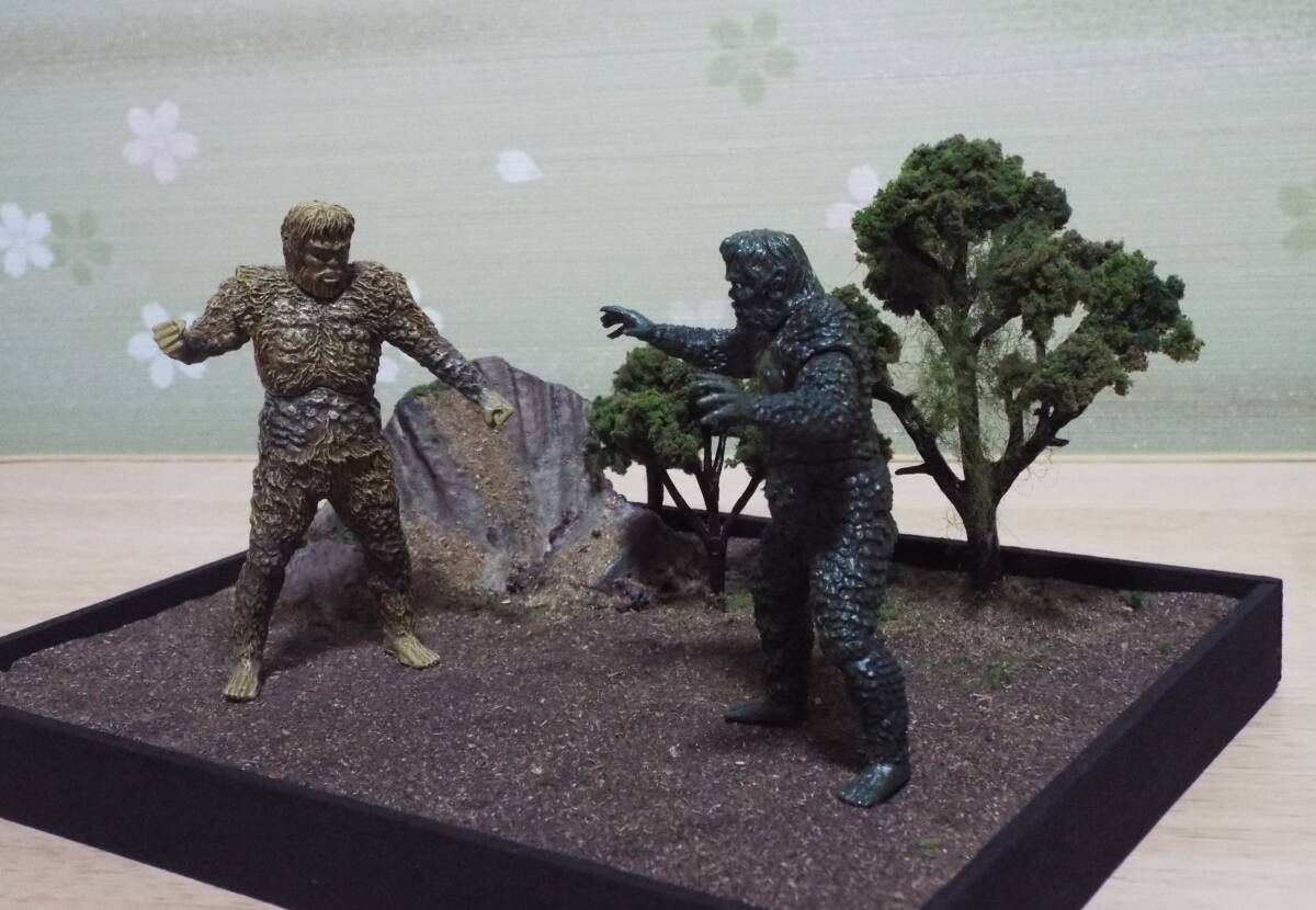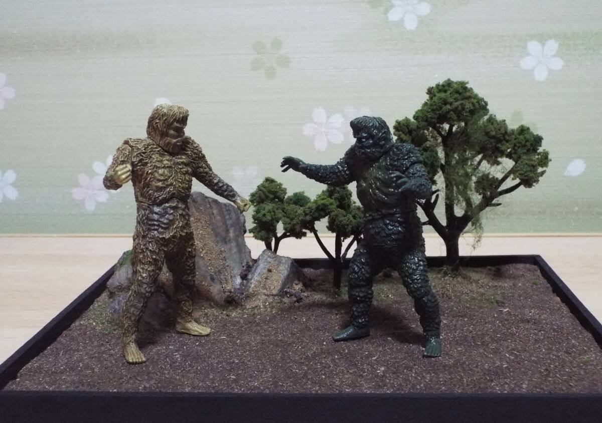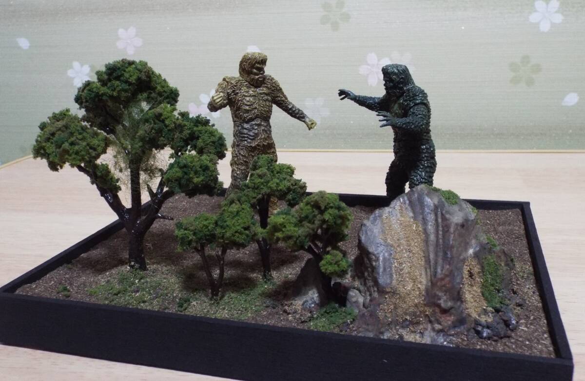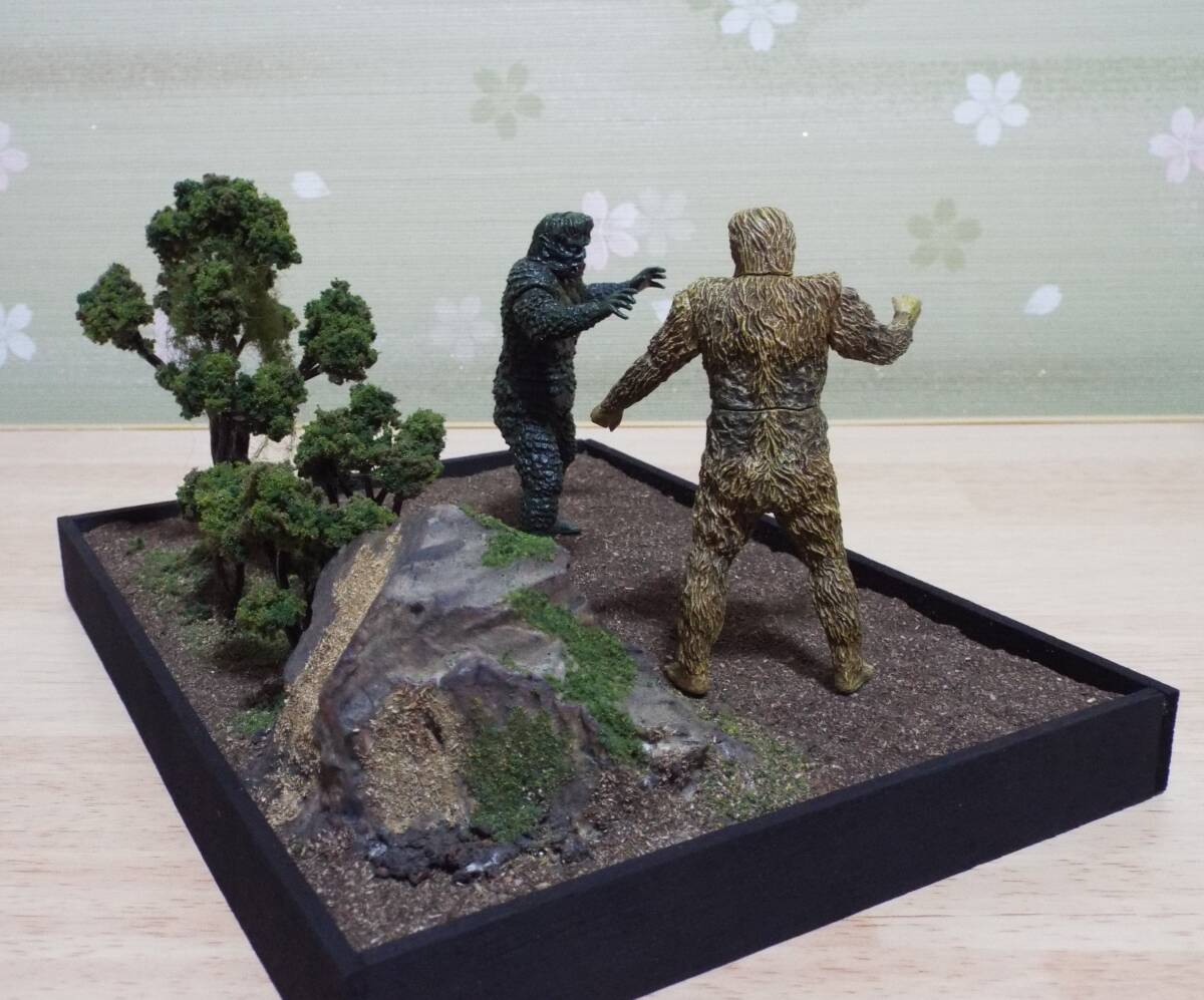 自作ジオラマ HGサイズ 「サンダ対ガイラ」 情景イメージ 完成品 フィギュア付き