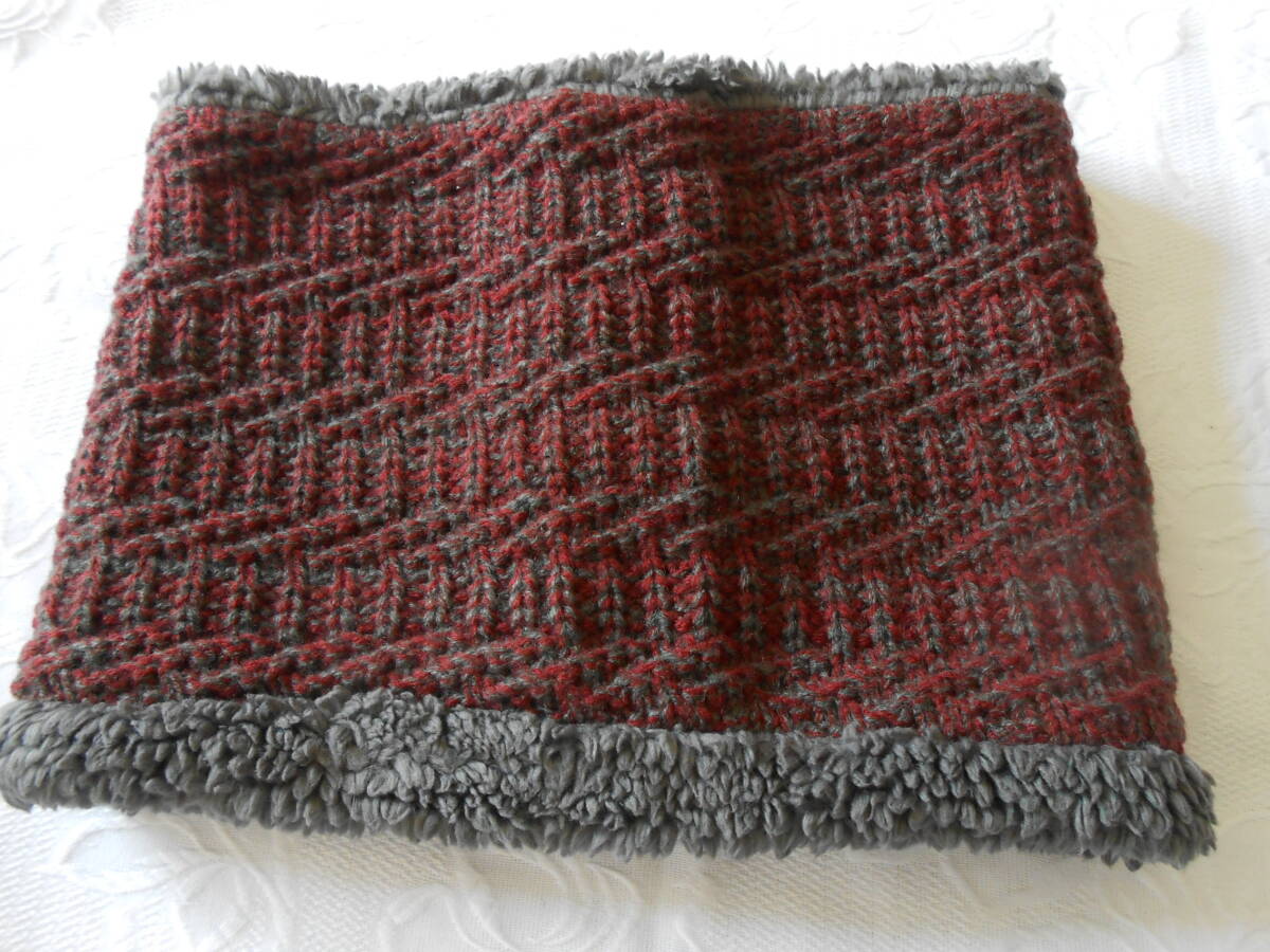 毛糸で編まれた面とボア素材の面の暖かなネックウォーマーです。