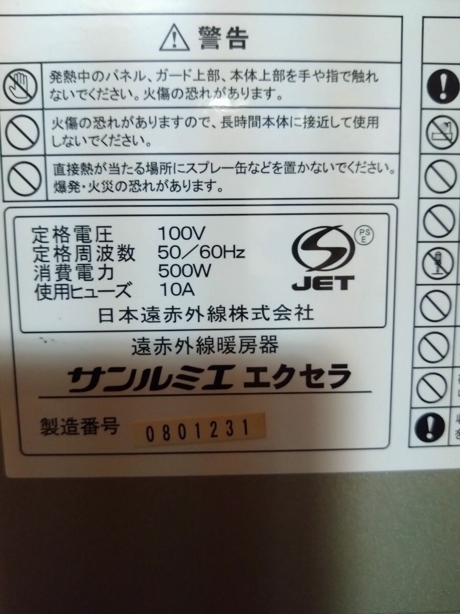 サンルミエ エクセラ 暖房器具 中古美品  遠赤外線暖房器