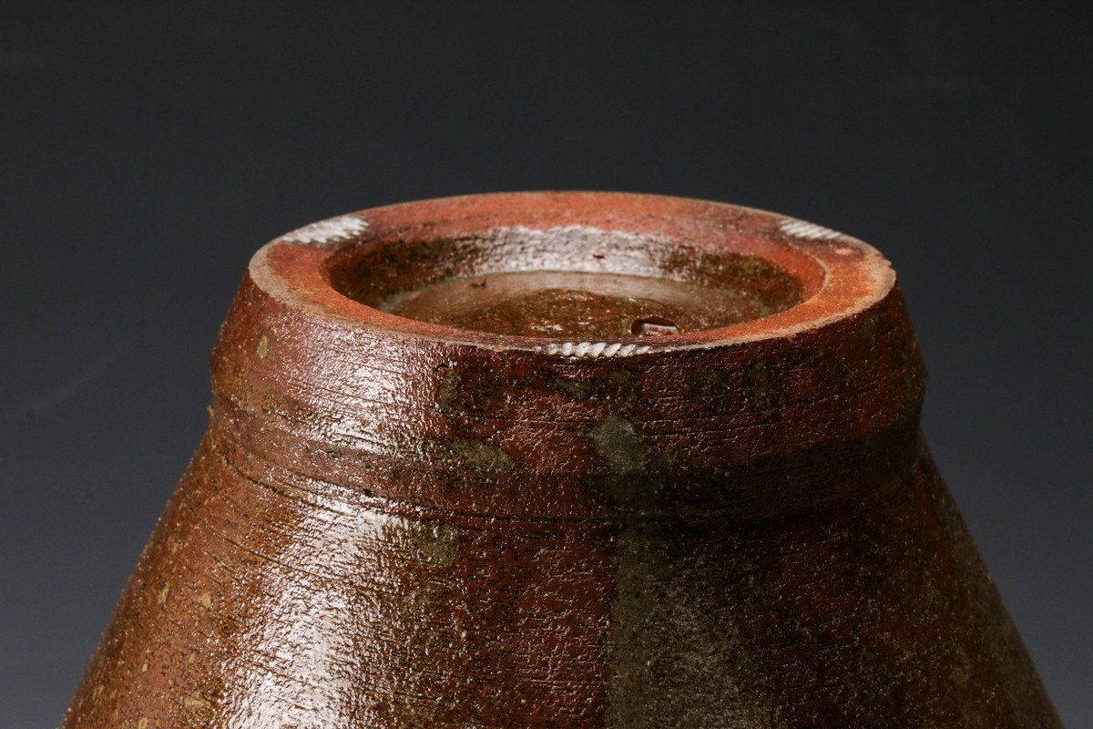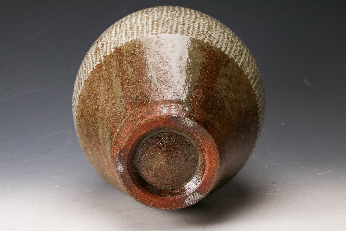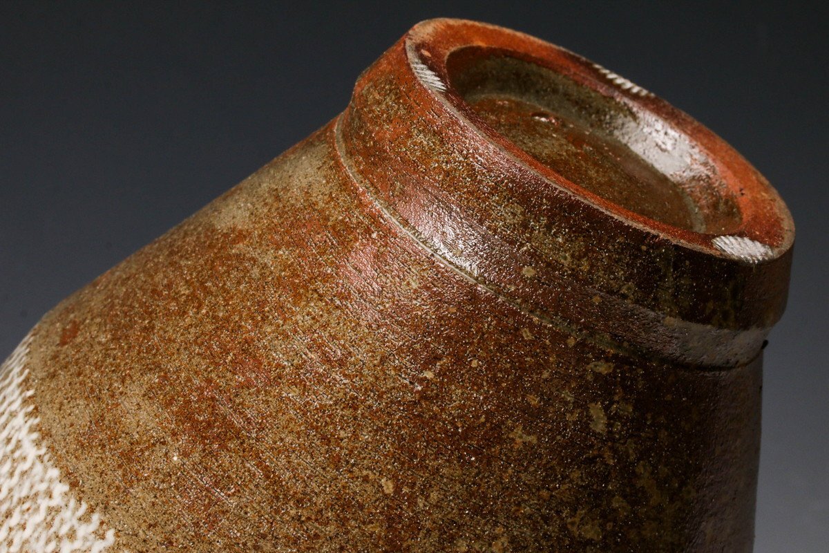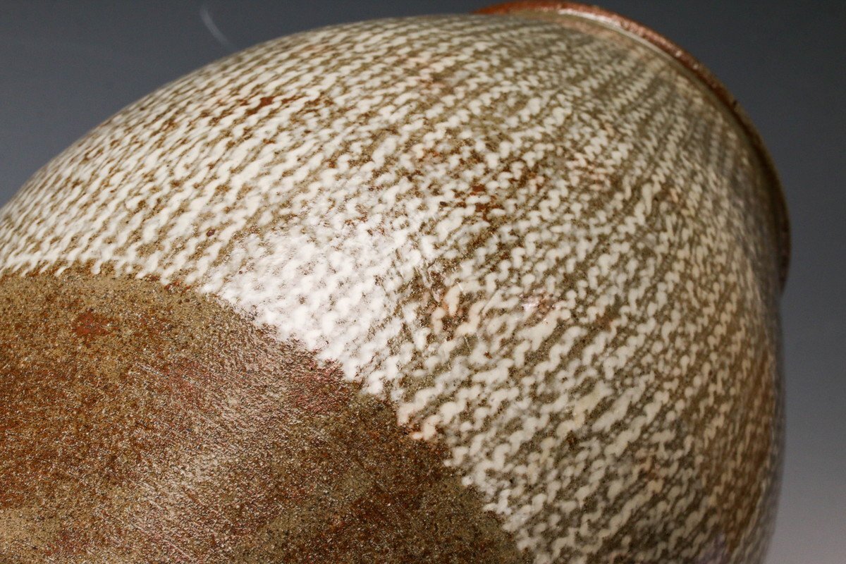 【佳香】島岡達三 高さ30cm 地釉象嵌線文壷 共箱 栞 作品展案内 本物保証