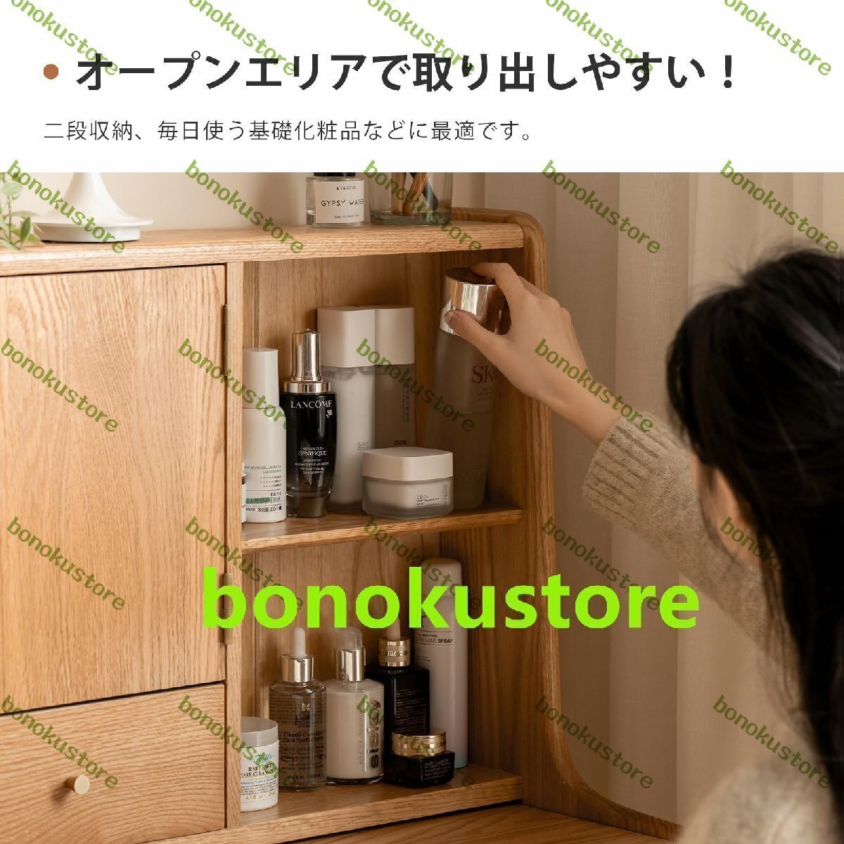 商品説明 【収納スペースが豊富】オープンエリアで取り出しやすい! 二段収納、毎日使う基礎化粧品などに最適です。間仕切りの多い引き出しで、たっぷり収納 【扉を開くと化粧鏡が出現】普段は内側なので、生活感が出にくいです。W約27.5 × H約31.5cm 【デスクとしても】ド商