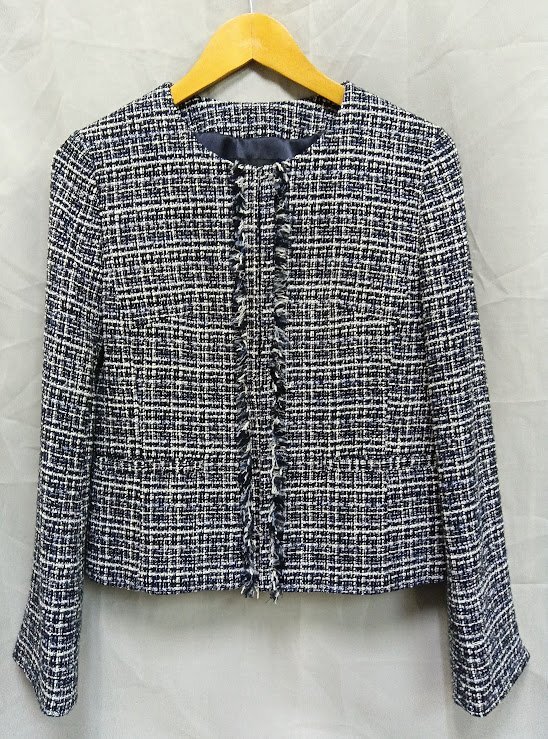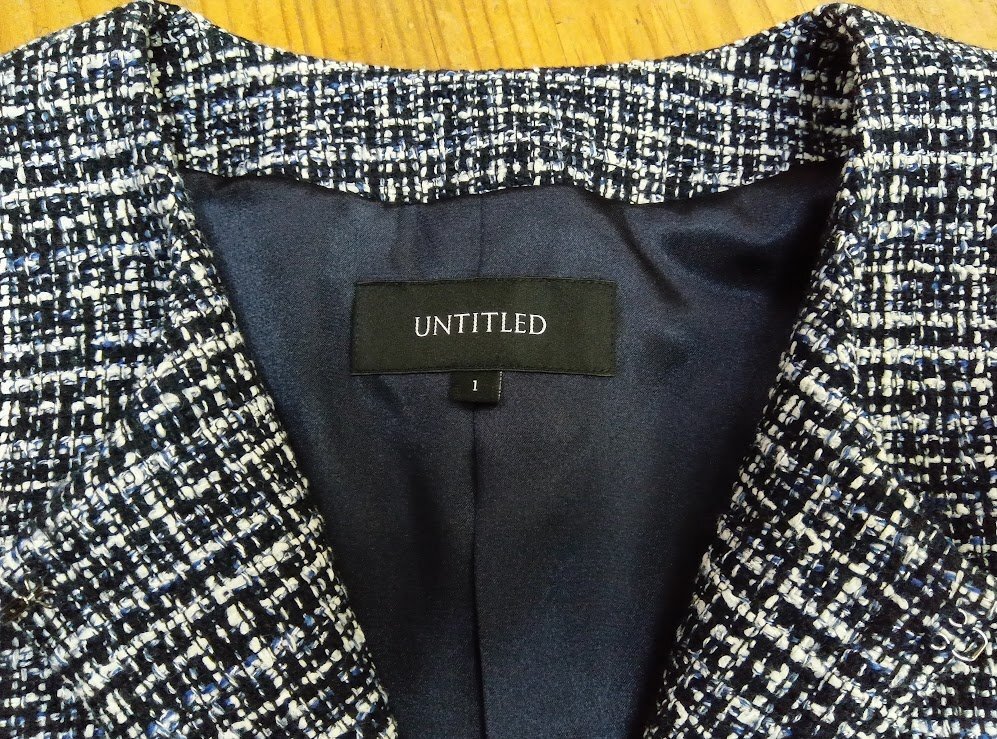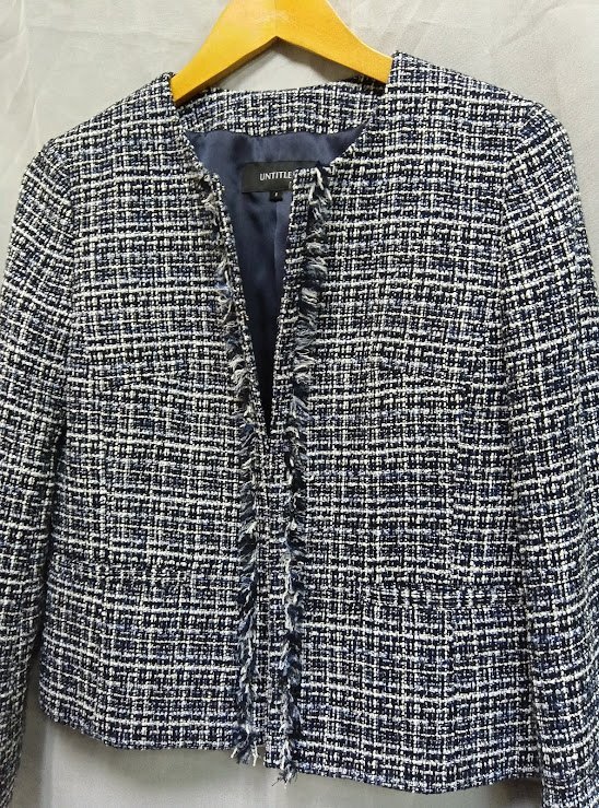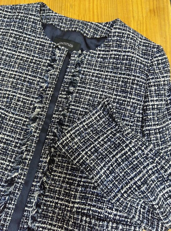 UNTITLED☆アンタイトル【セレモニースーツ】ラメツイード ノーカラージャケット 1 参考価格:39,600円 ネイビー 定番 人気 美品【中古】Y250919007