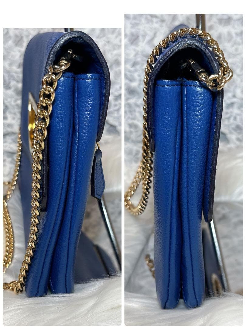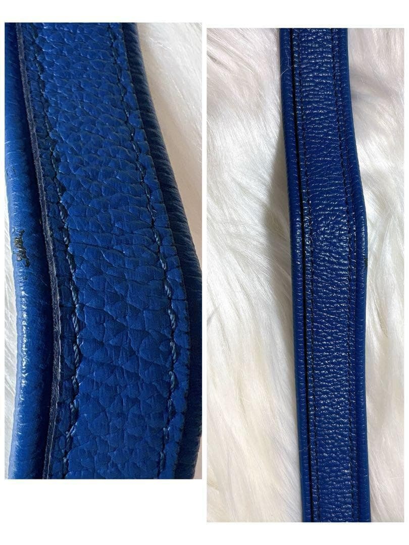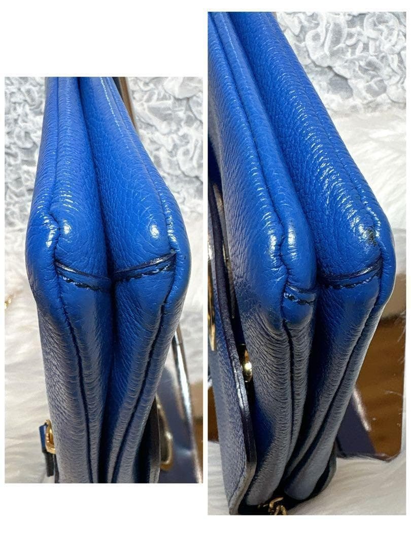 ・ショルダーのブルーの紐部分に、5箇所程度、小さな黒いスレあり。ほんの少しだけ白っぽく見える部分もあり。