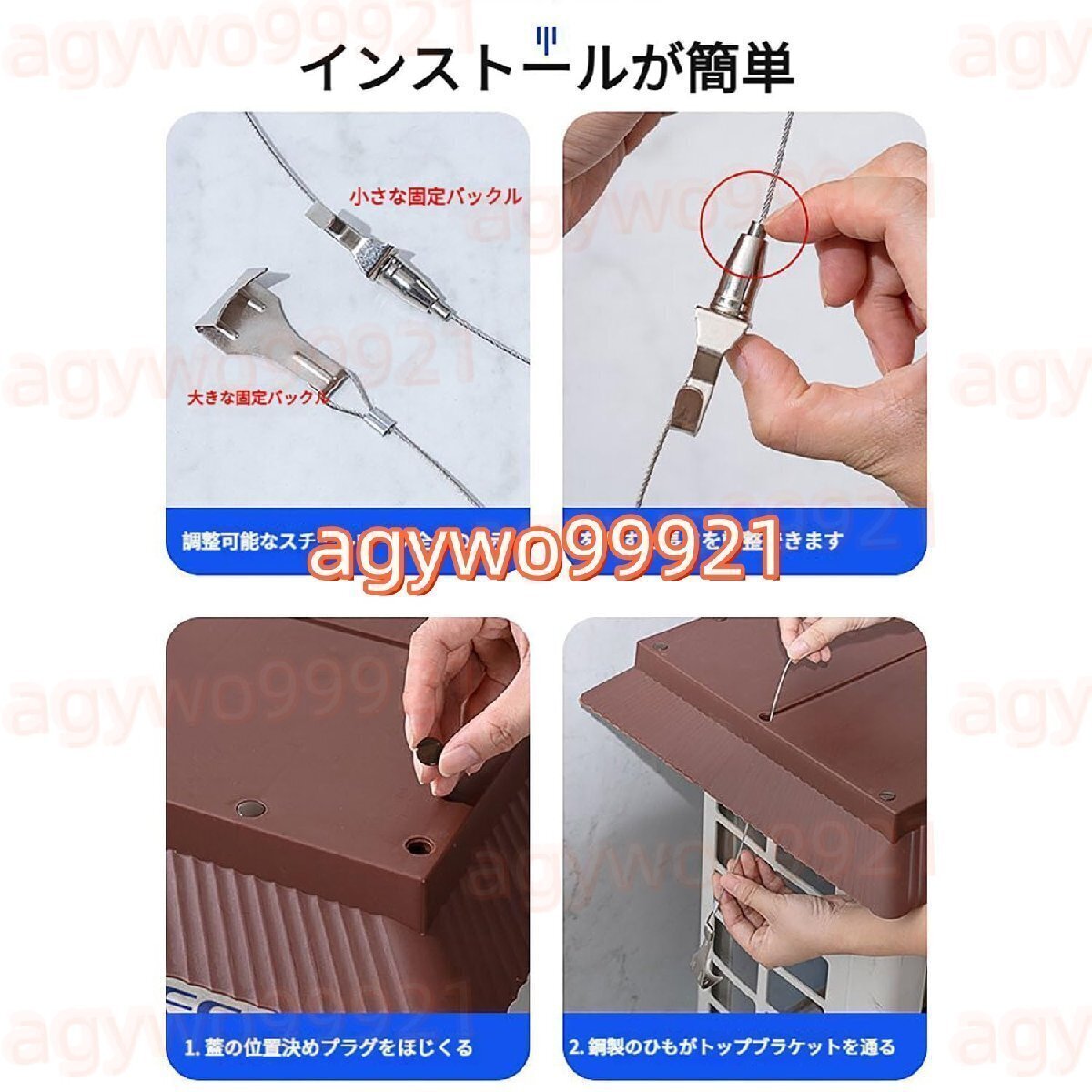 簡単な取り付け:エアコン専用に設計されており、エアコン室外機の両側を引っ掛けるだけで、巻き付けることなく簡単に取り付けられます。ステンレス製のカバーは、スチールワイヤーロープでエアコンにしっかりと固定されており、壊れにくく強固な接続を形成し、強風や盗難時でも落下を防ぎます。