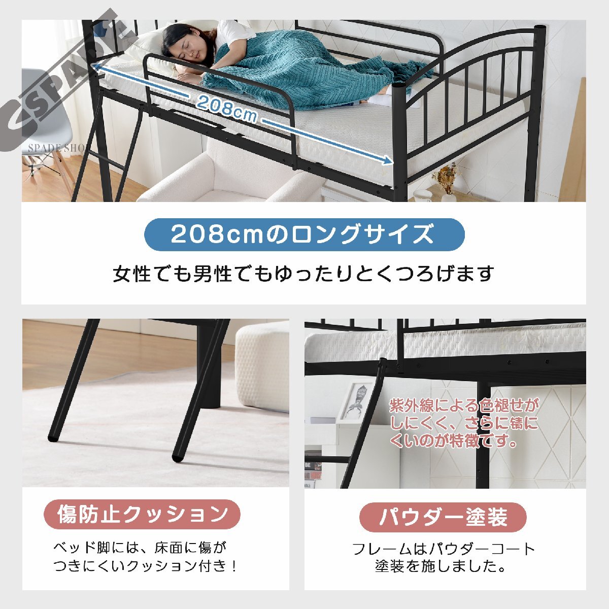 • Detail Point 1 208cmのロングサイズ 女性でも男性でもゆったりとくつろげます 2 傷防止クッション ベッド脚には、床面に傷がつきにくいクッション付き! 3 パウダー塗装 フレームはパウダーコート塗装を施しました。紫外線による色褪せがしにくく、さらににくいのが特徴です。