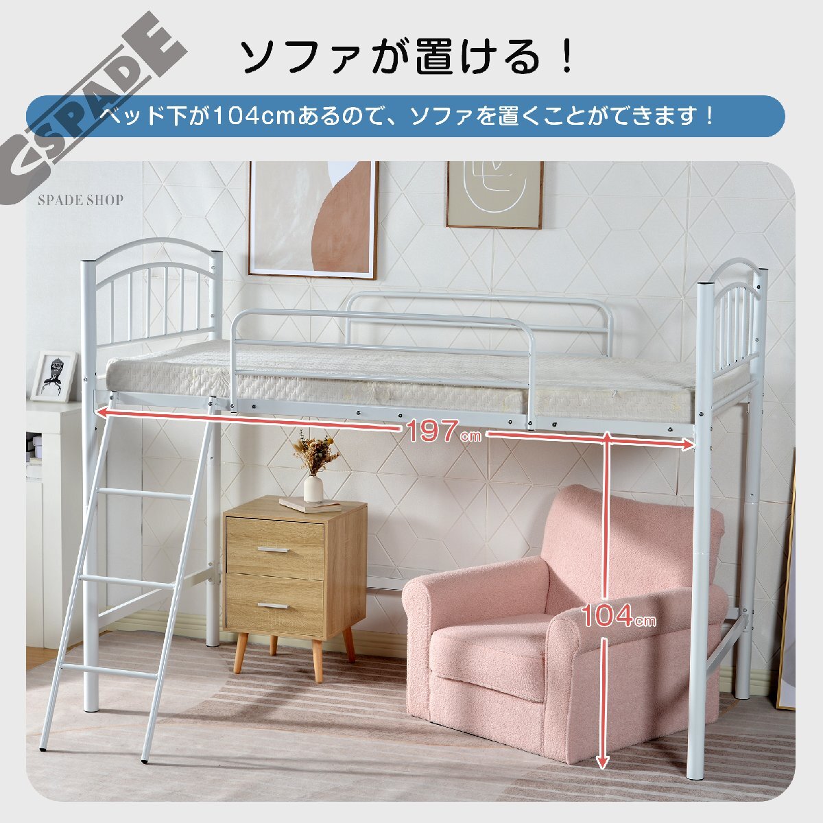 【国内発送】ロフトベッド 階段 はしご ハイタイプ 子供 大人 シングル パイプベッド 宮付き ホワイト ブラック モノトーン モダン シンプ