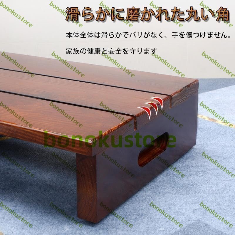 製品の利点●塗料や薬品を使用していないので、人にも環境にも優しい安全で環境に優しい製品ですので、ご家庭でも安心してご使用いただけます。●ベランダでの物干しや高いところにあるものを取るとき、お風呂場でのお子様の手洗い、お年寄りの階段の上り下りなどに最適です。●仕事や在宅勤務時の足置きや、メタボ対策のための階段の上り下りにも!●収納に便利で、電子レンジやプリンターの台として使用したり、下駄箱や引き出しの上げ下げにも使えます。製品詳細:製品名: ステップスツールエントランス製品の色: ウォールナット商品のサイズ:長さ: 40/50/60/70/80/100cm幅: 30cm高さ:11/15cm材質:パイン材組み立てるかどうか: いいえ商品についてご質問がございましたら、メッセージを残してください。 できるだけ早く返信させていただきます。
