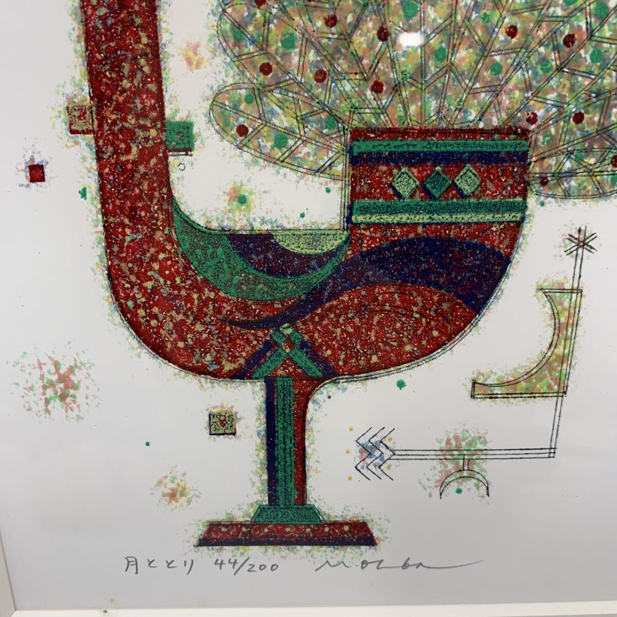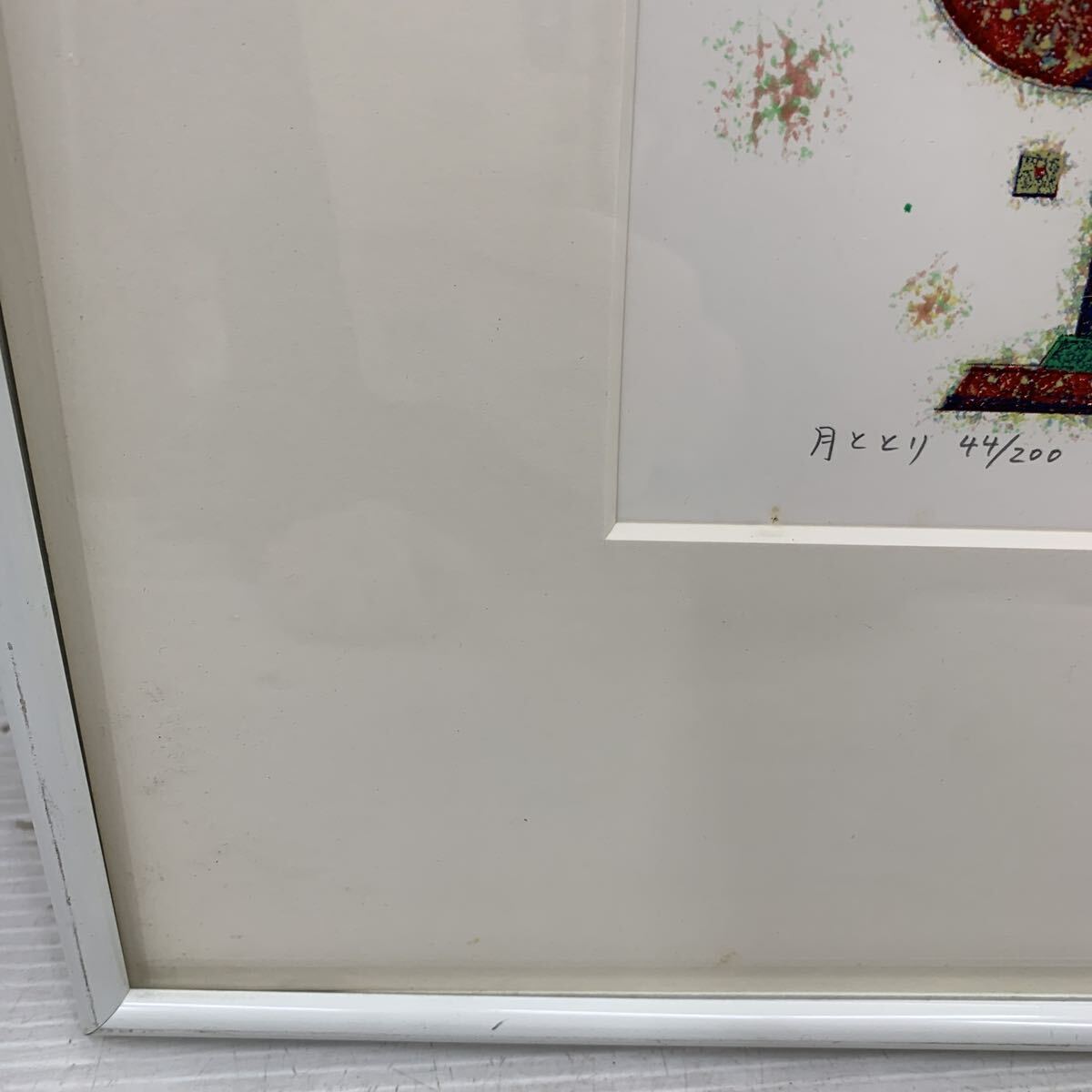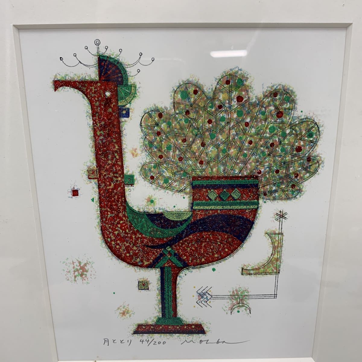 I☆真作☆美術品 額装 版画 インテリア 大場正男 月ととり ペーパースクリーン 44/200 絵 額縁 鳥 サイン レア 限定品 ポスター 日本製