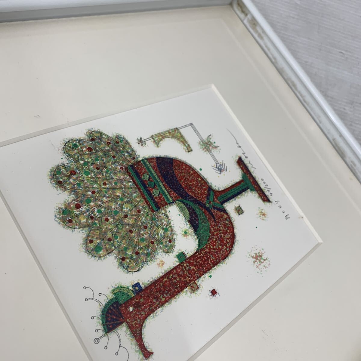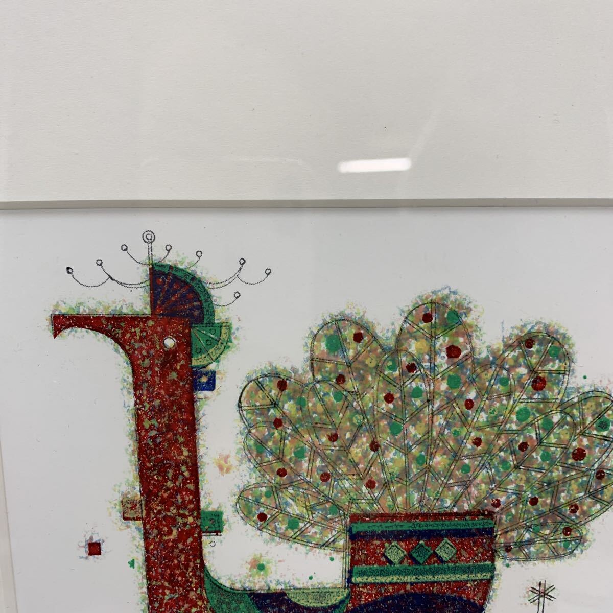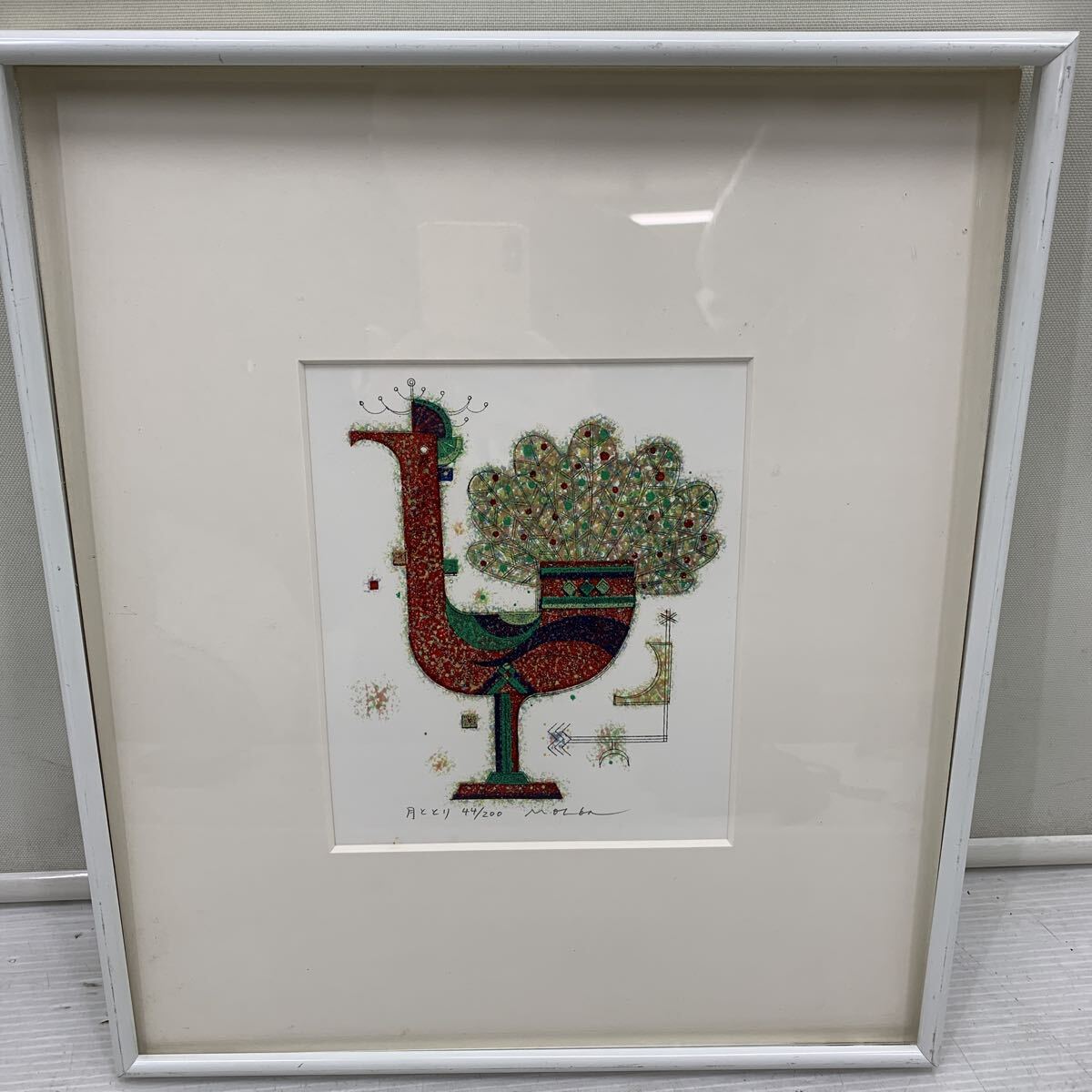 I☆真作☆美術品 額装 版画 インテリア 大場正男 月ととり ペーパースクリーン 44/200 絵 額縁 鳥 サイン レア 限定品 ポスター 日本製