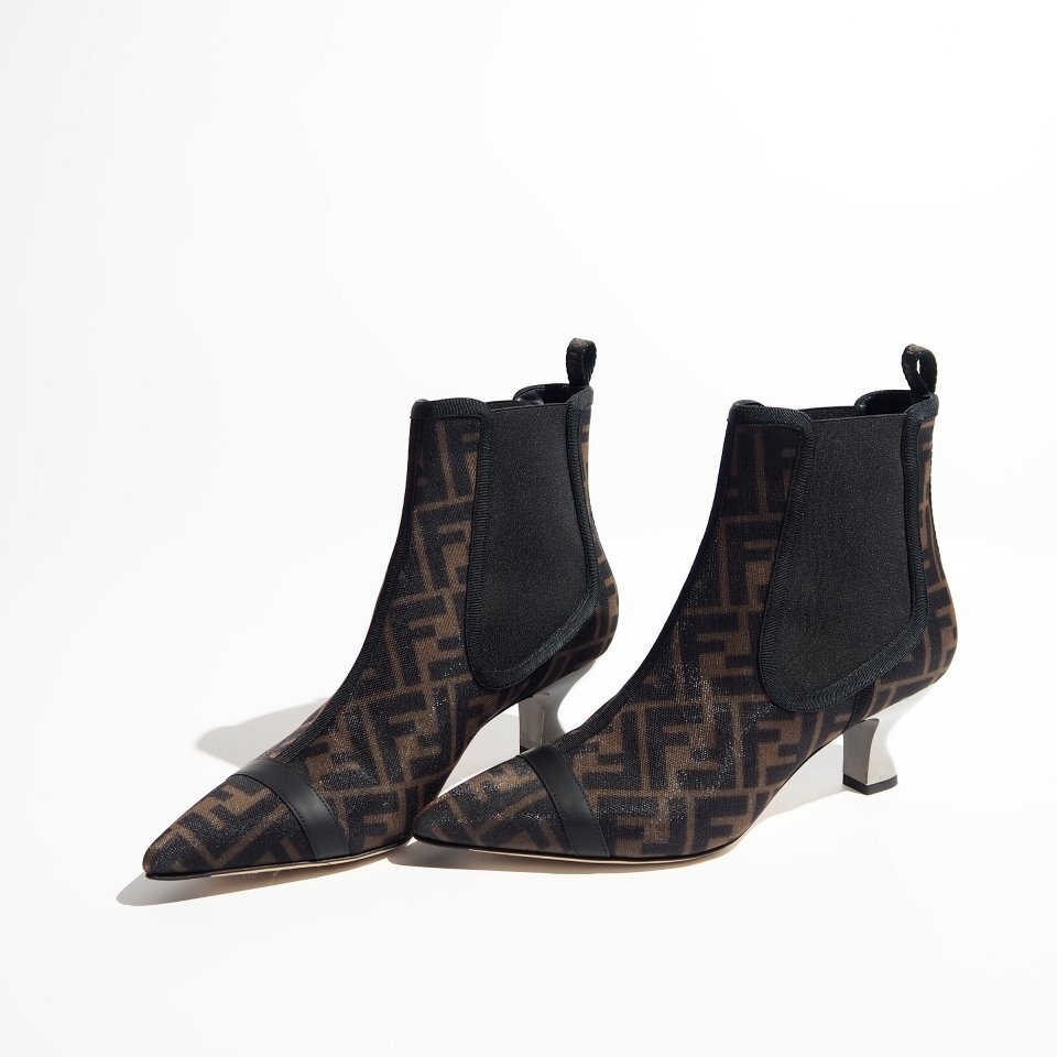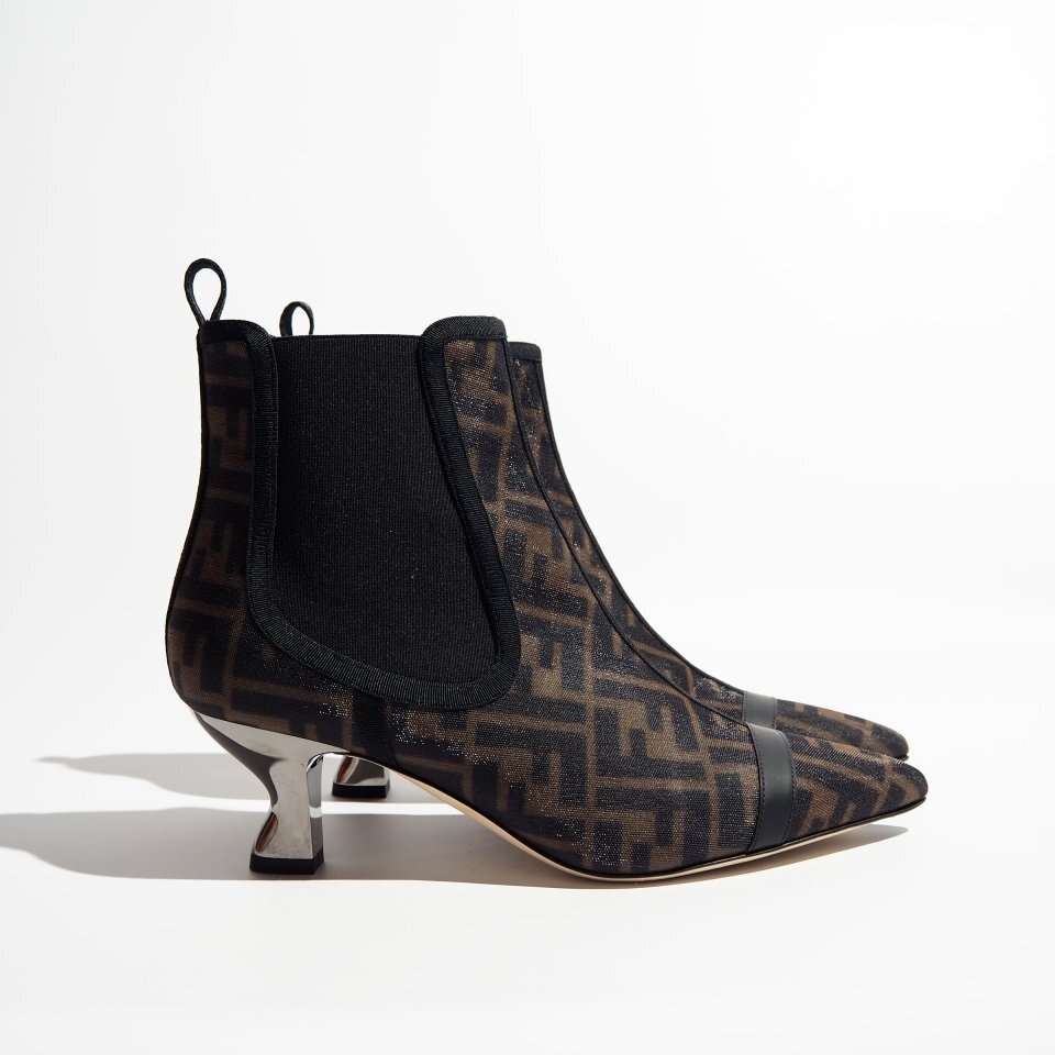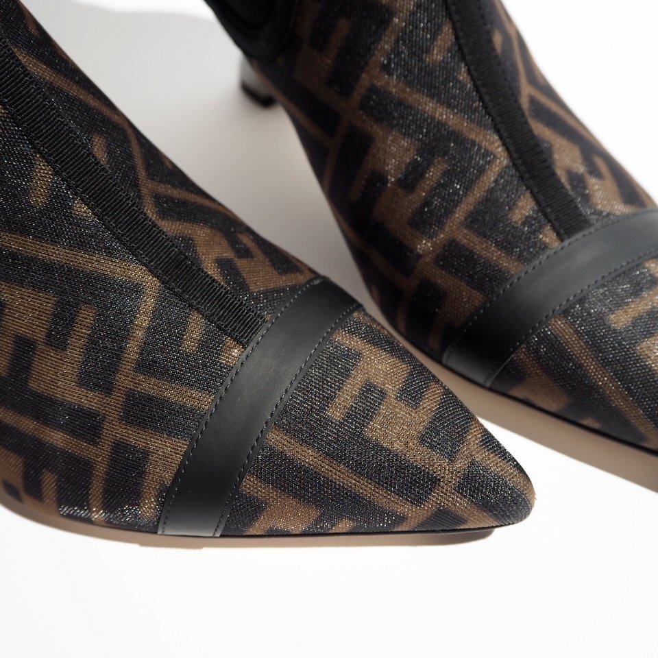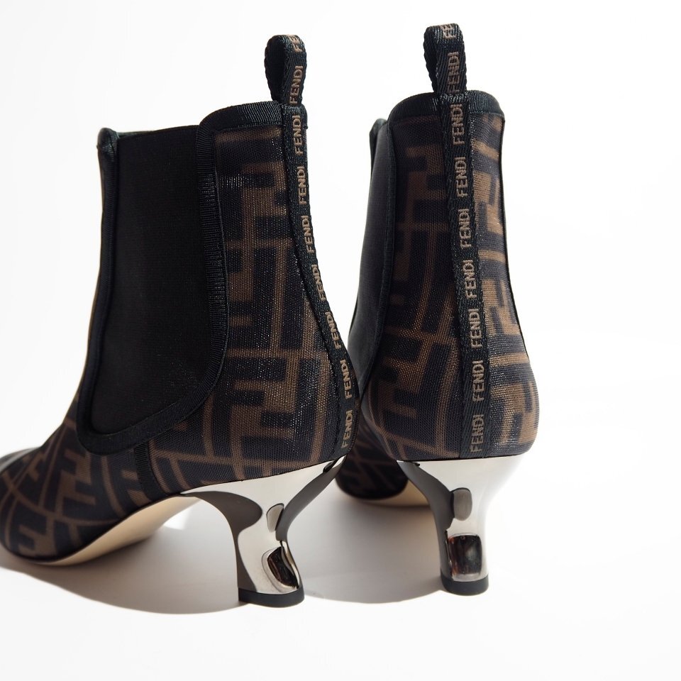FF柄ナイロン メタルヒール チェルシーブーツ ブラック×ブラウン 39/24.5cm