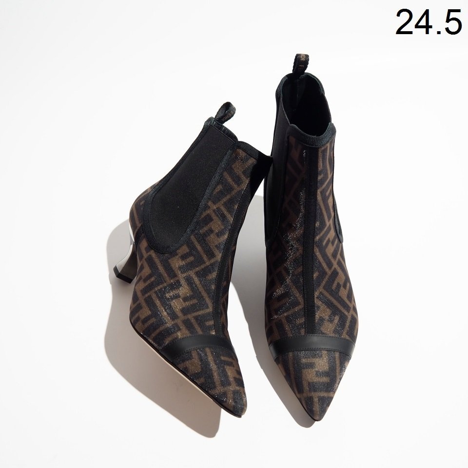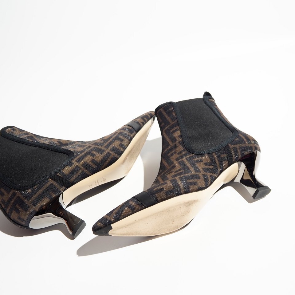 R3688P ▼FENDI フェンディ▼ FF柄 ナイロン メタルヒール チェルシーブーツ ブラウン 39/24.5cm サイドゴアブーツ シューズ rb mks