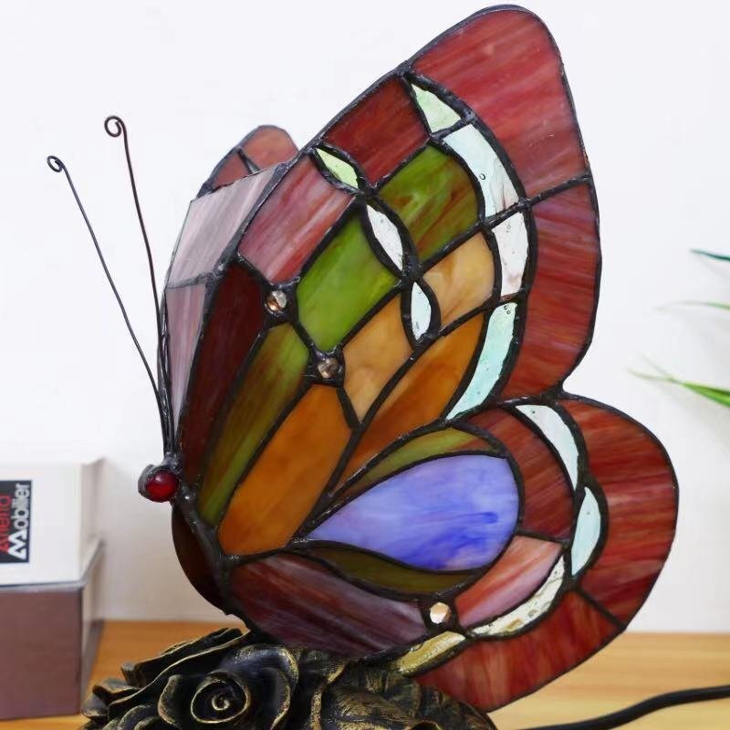 新品未使用!ステンドグラス 蝶 高23cmインテリア レトロ テーブルランプ ステンドグラスランプ 卓上照明 ライト