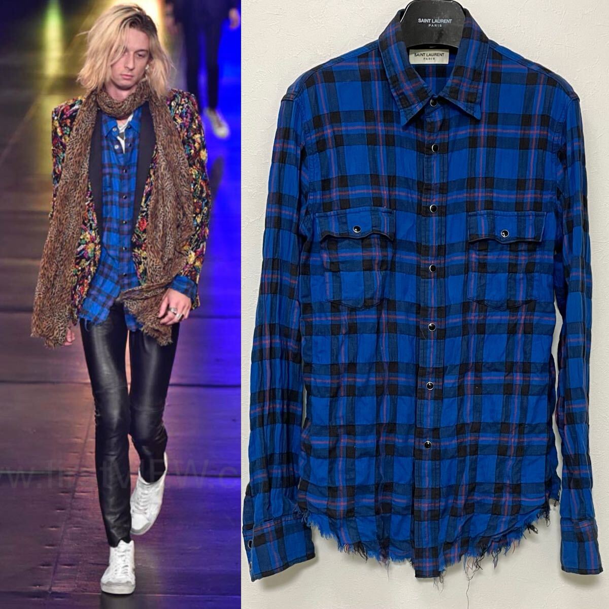 2016SS SAINT LAURENT PARIS エディスリマン カットオフ加工 チェックシャツ、サイズSになります。