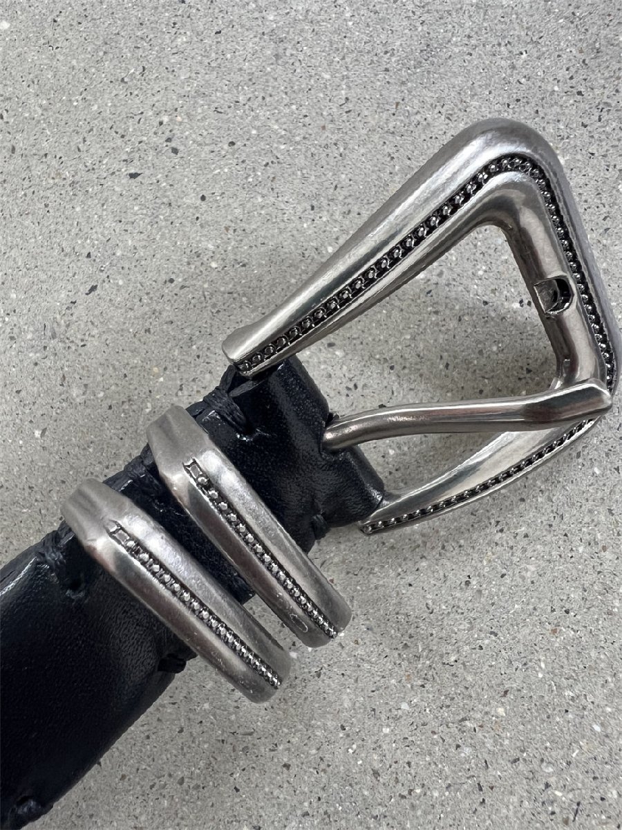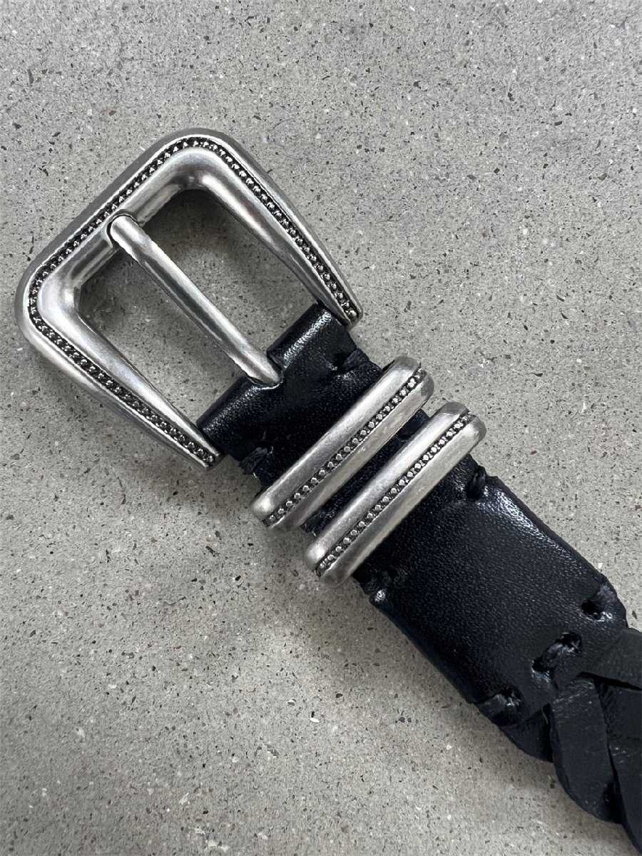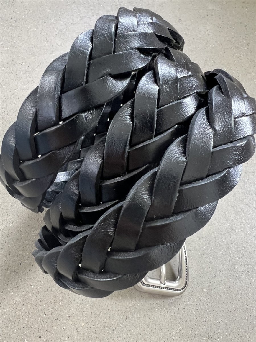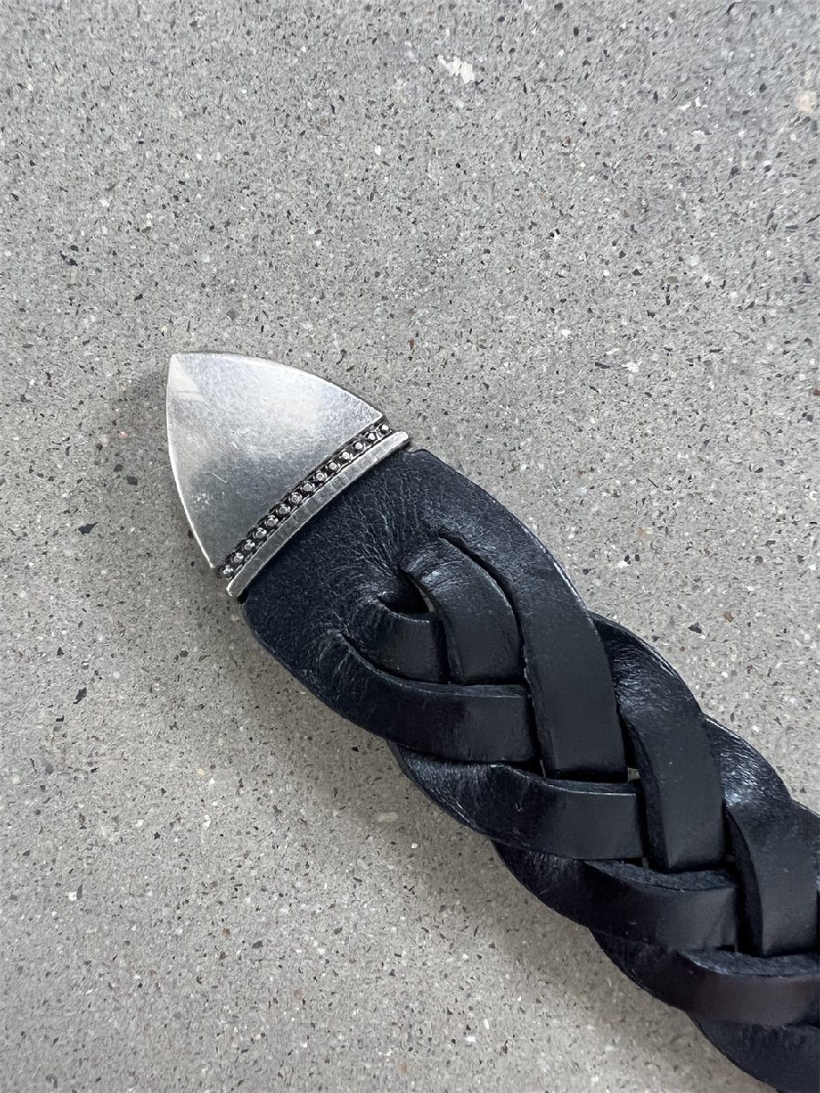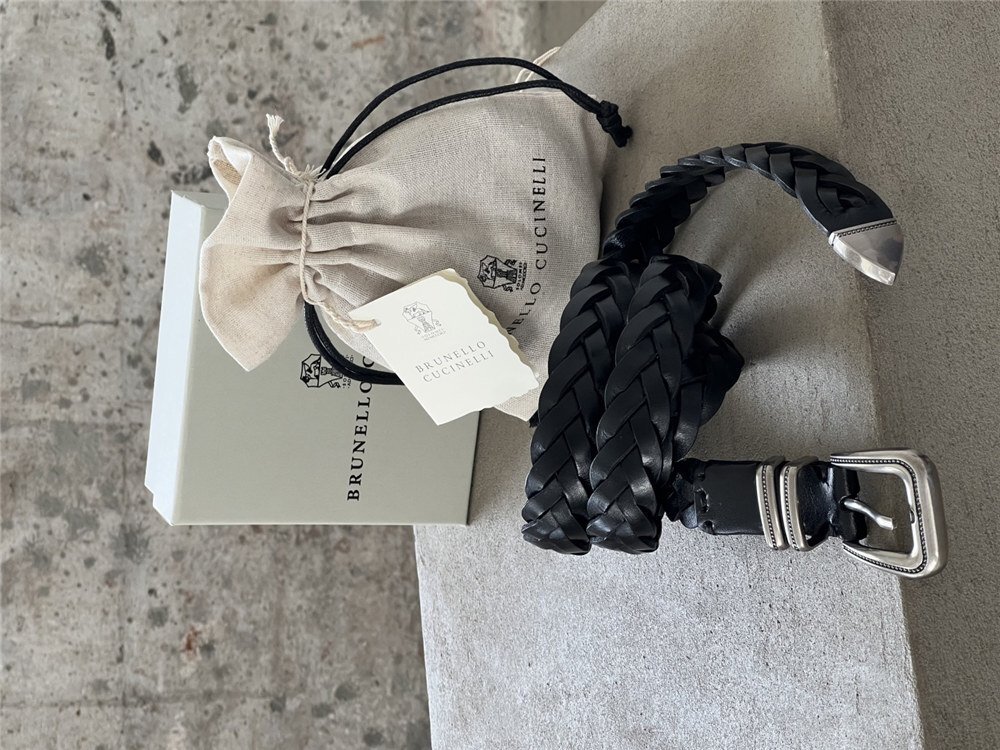 BRUNELLO CUCINELLI ブルネロクチネリ LEATHER belt レザーベルト 編み上げ オシャレ 125cm 幅2.5cm ブラック |