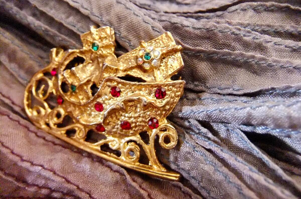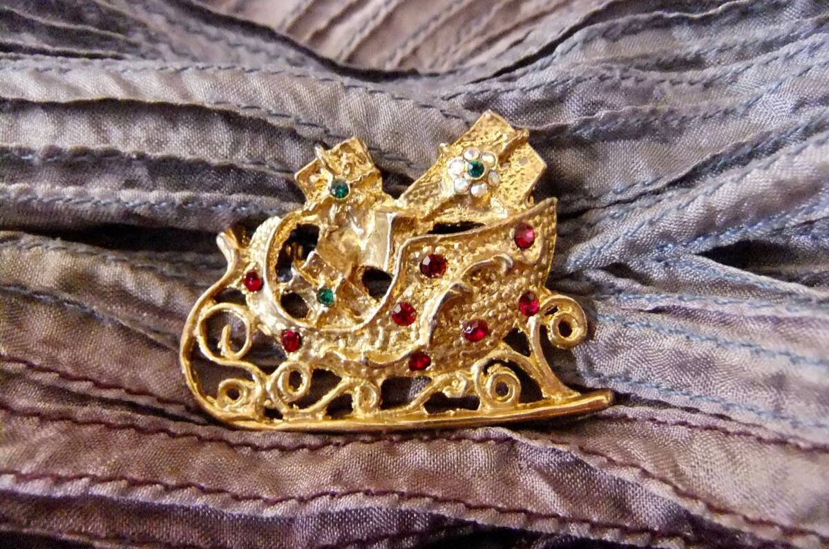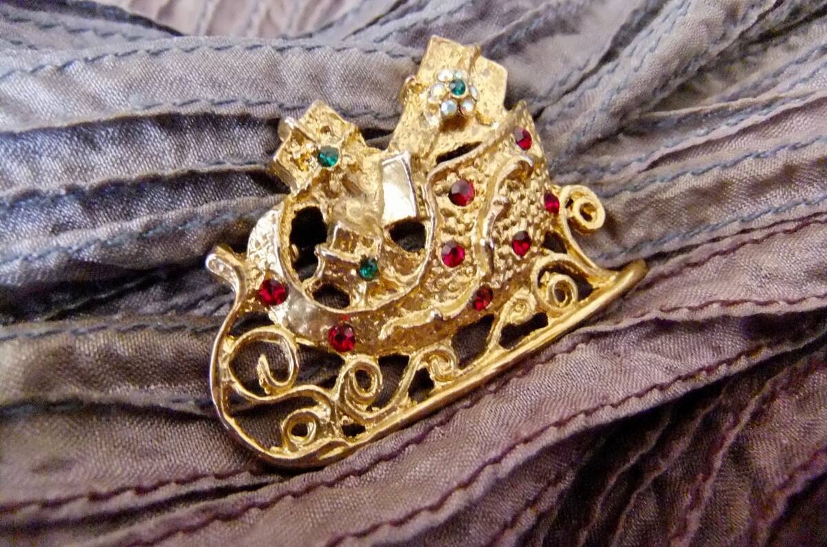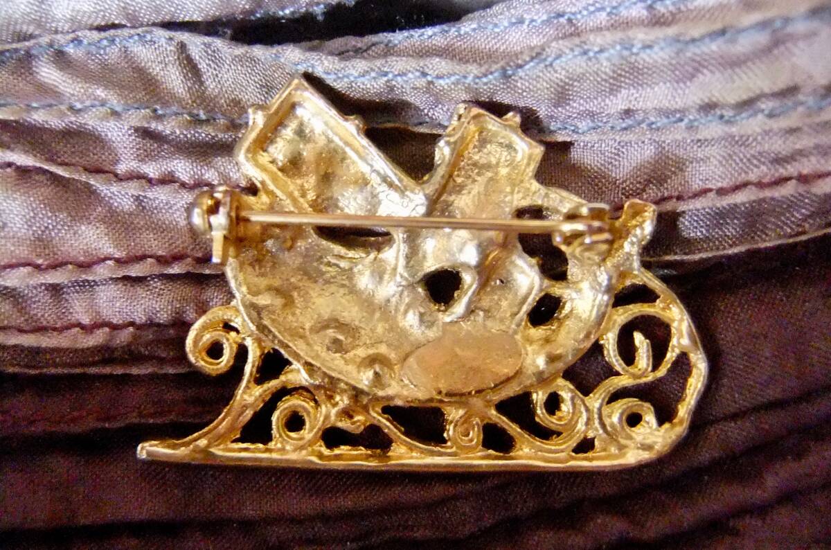 ヴィンテージ:プレゼントを載せた橇のブローチ 3-93