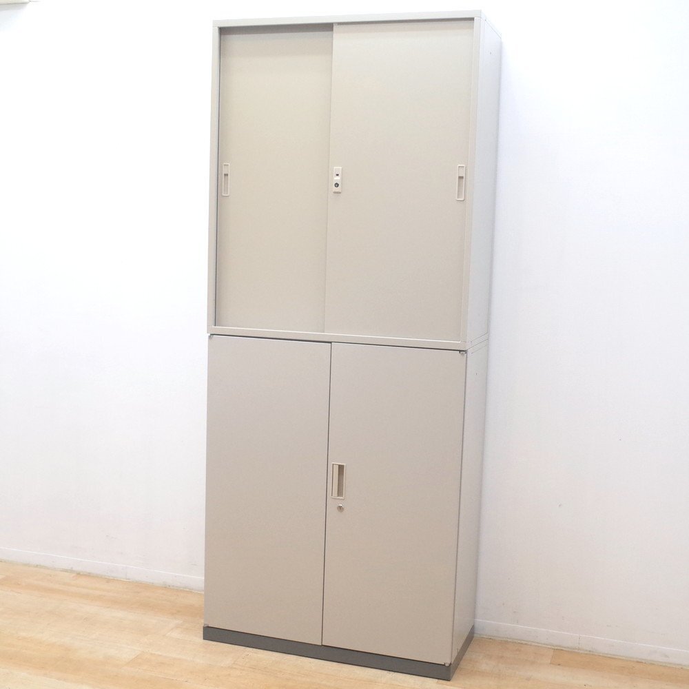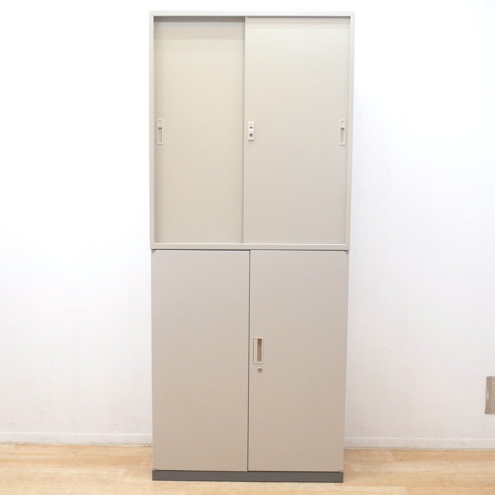 上下書庫が入荷されました。上段は引き戸扉、下段は両開き扉の組み合わせです。 合わせて6段棚の大容量タイプ!A4ボックスファイルや事務用品など大量に収納可能です。 また、緊急時の収納物の飛び出しを防止できるラッチ付きで安心。 オフィス空間にしっくり馴染む落ち着いたグレーカラー。 ぜひ、この機会に収納しきれない資料や仕分けしたい収納物を一気に整理しませんか? ※配送ご希望のお客様※こちらは、混載便は2個口、家財おまかせ便は1個口の配送となります。 家財おまかせ便ご希望の際の送料は、別途お問い合わせください。 ※写真で掲載の商品そのものが届くとは限りません。複数入荷した中の1点を掲載している場合がございます。 |