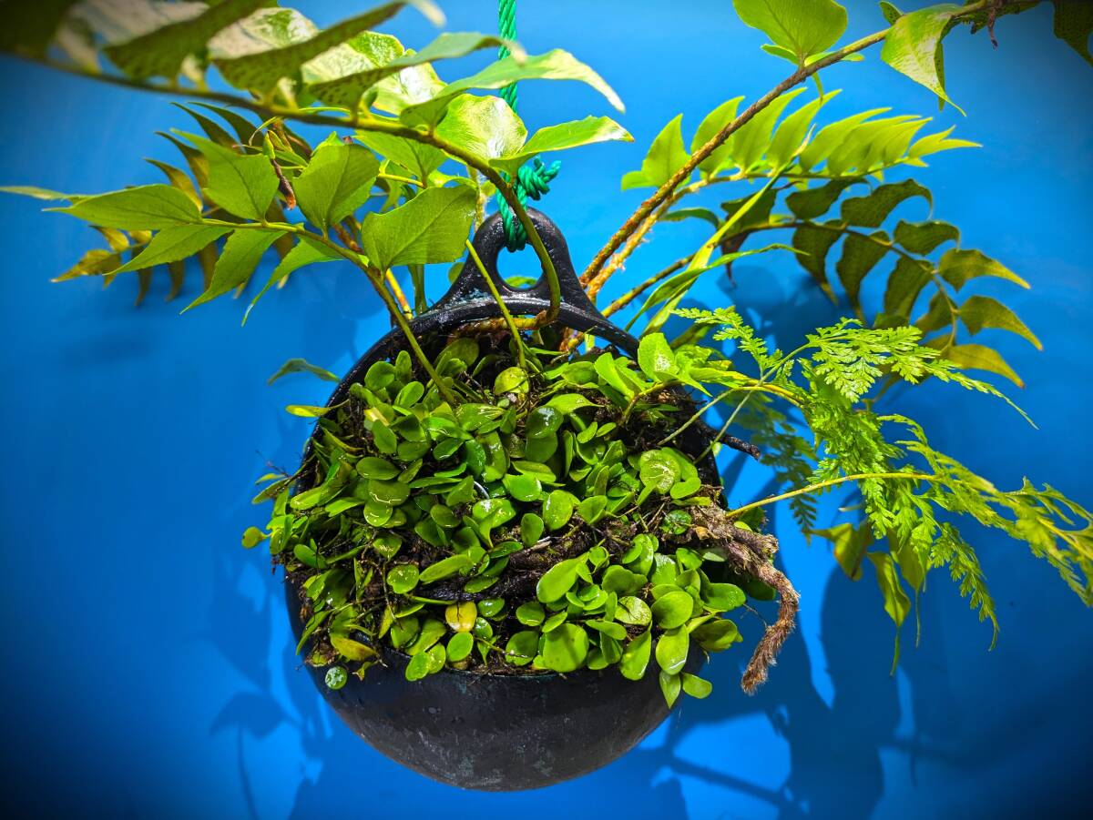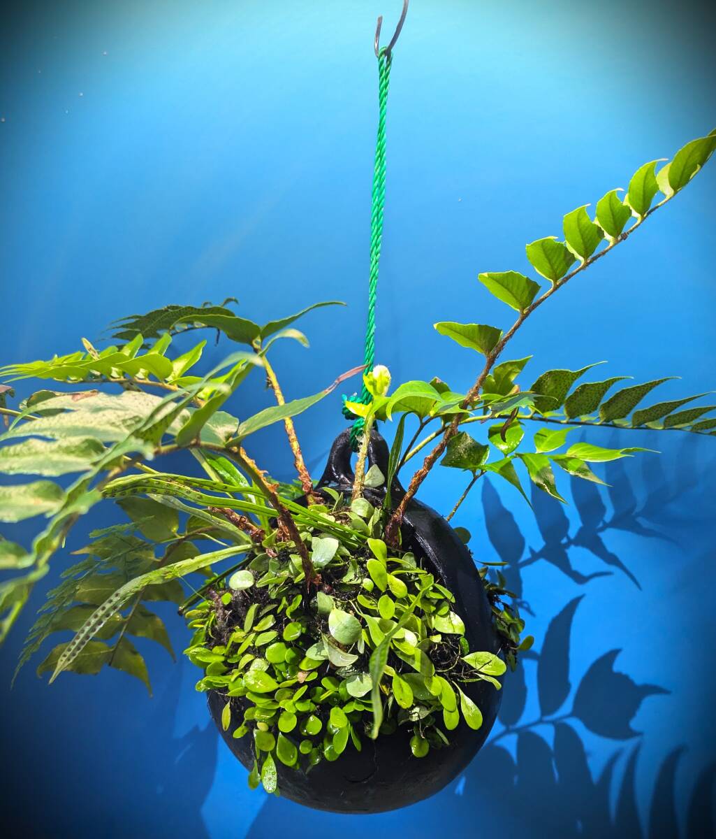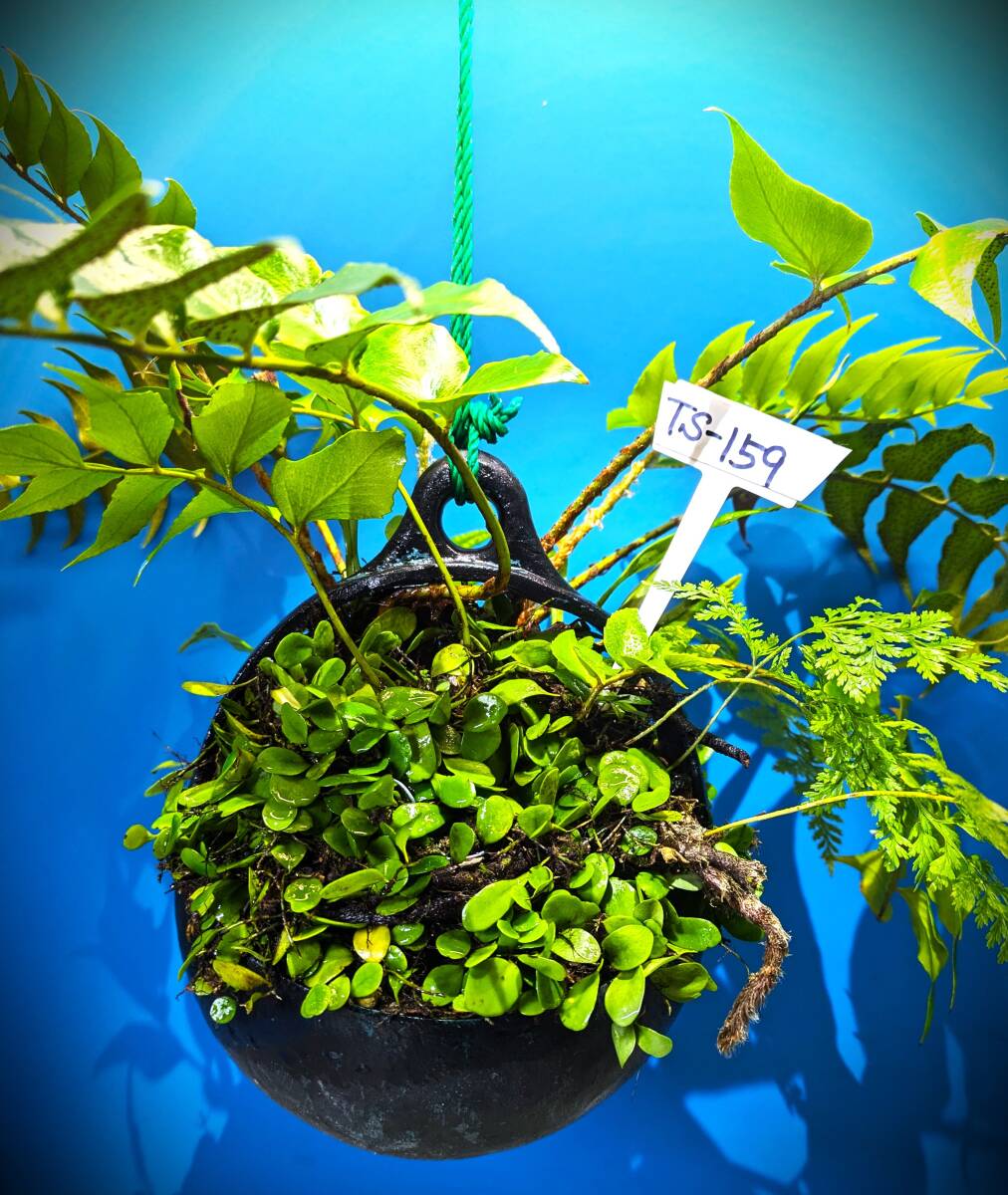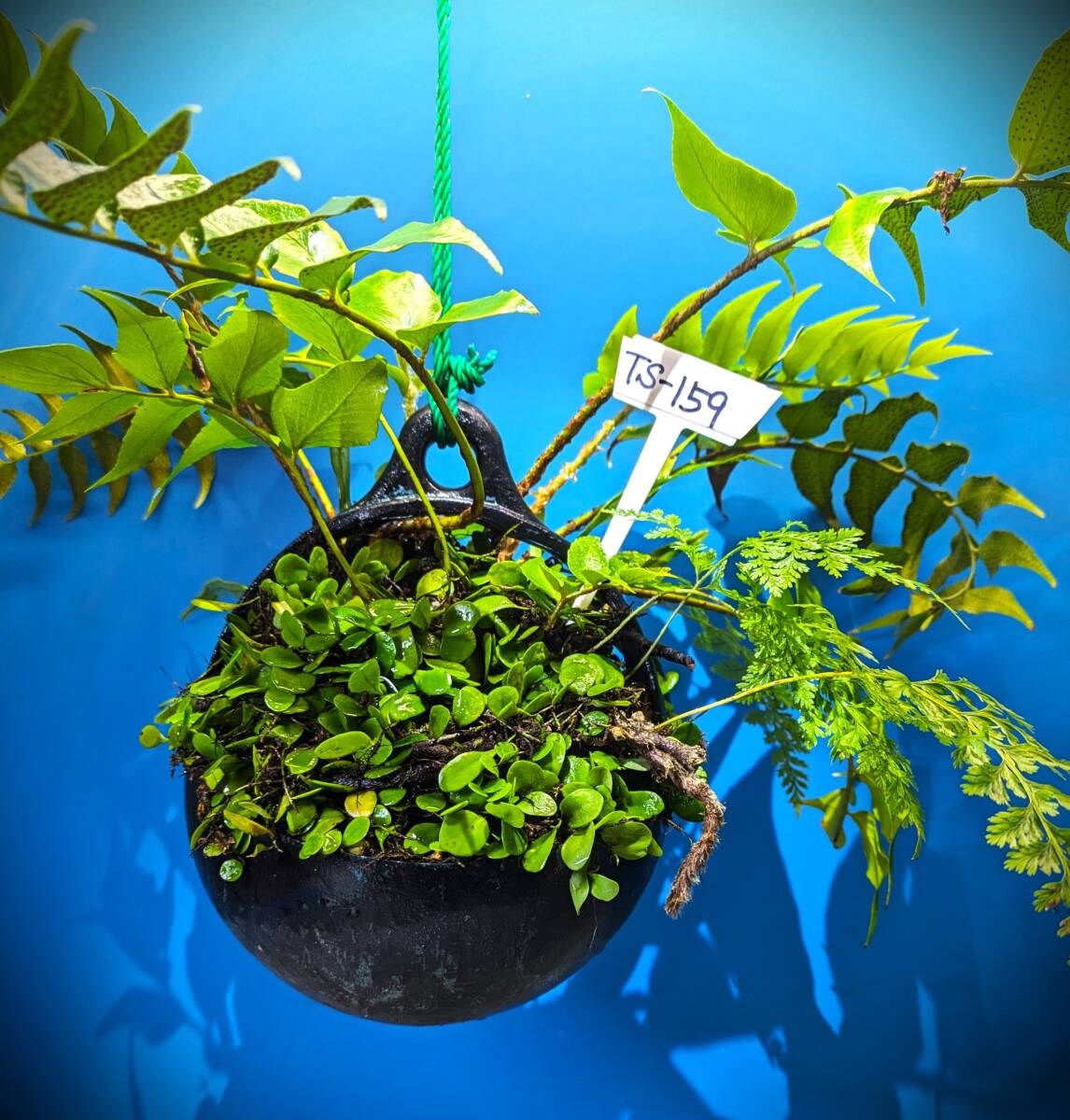 | ▲▽夢道園の特製吊鉢植え、常緑ヤブソテツ、トキワシノブ■盆栽■苔、コケ■山野草■TS-159△▼ | ||