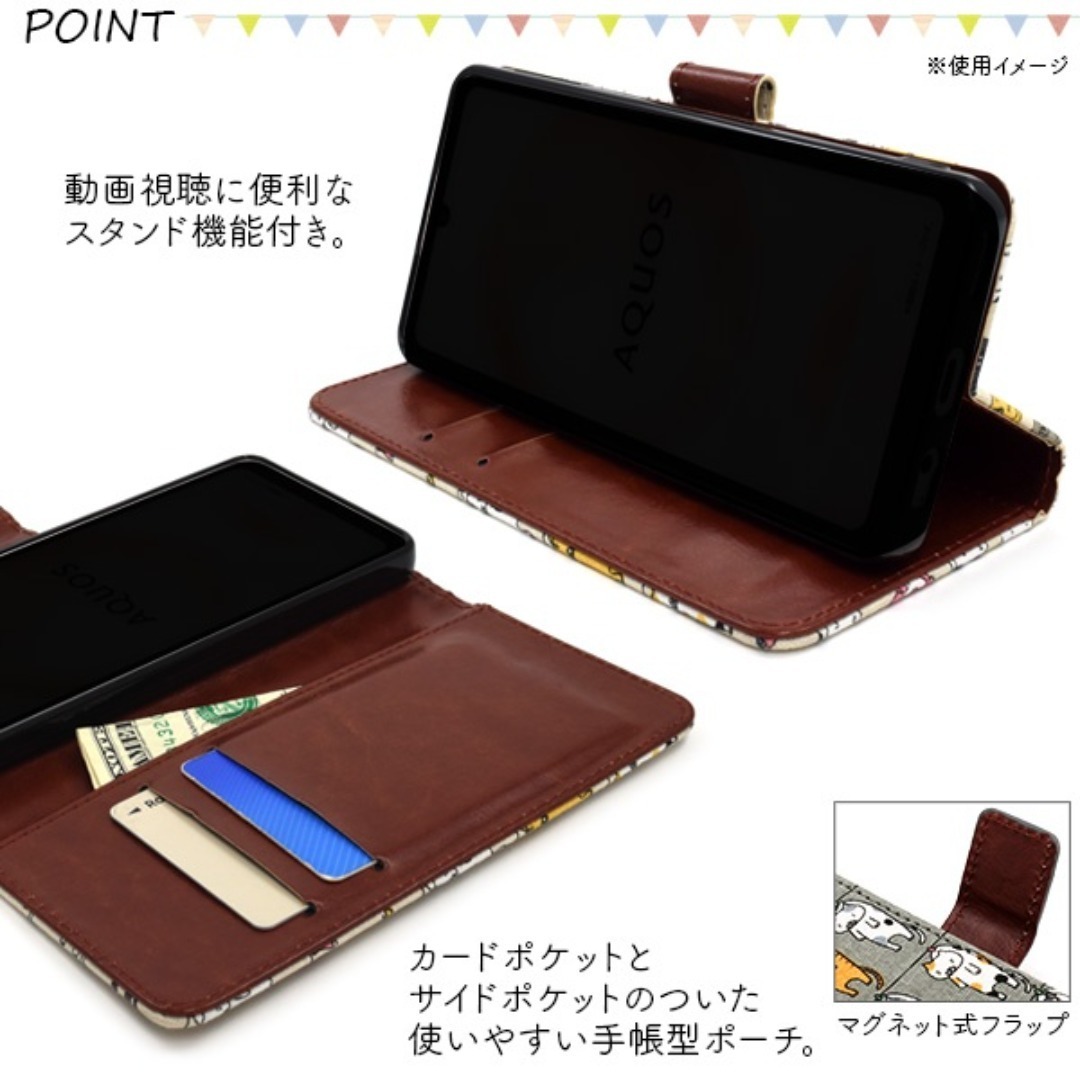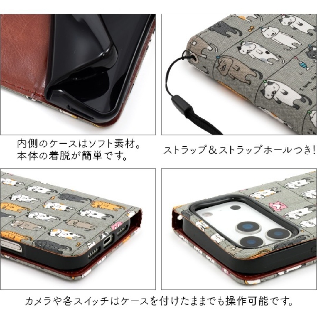 \にゃー!/干されてる猫手帳型ケース 猫好きなら気に入ること間違いなし!!いっぱいの猫達が干されている柄の手帳型ケースです。