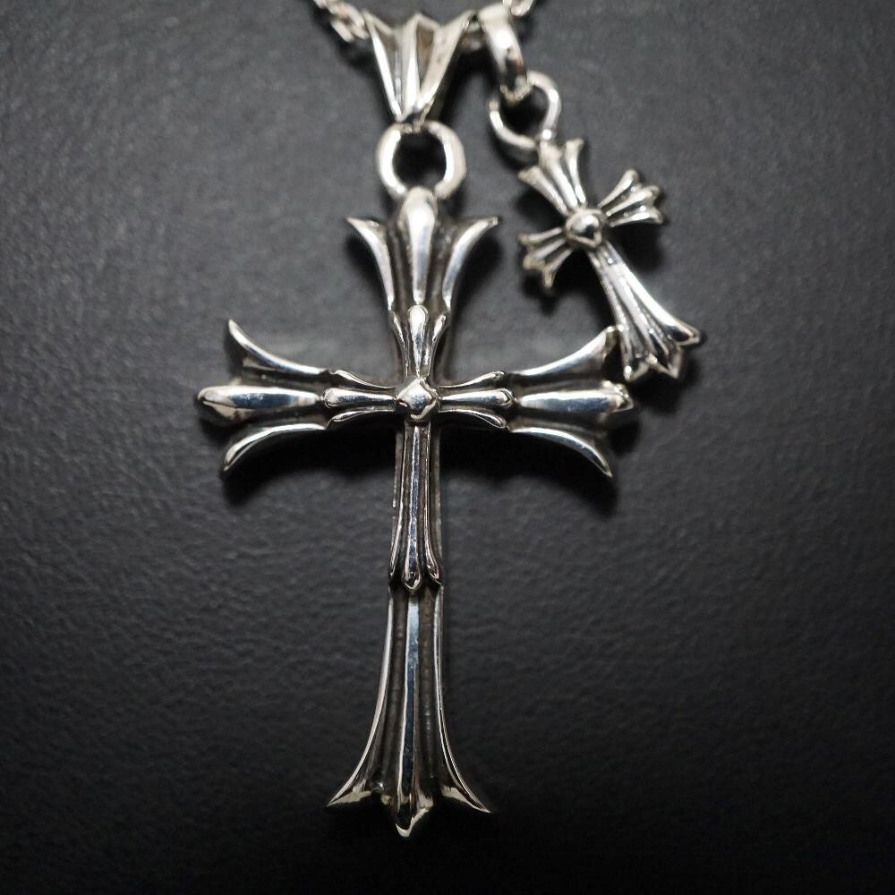 シルバー925 シルバーネックレス クロス ペンダント ダブル 十字架 トップ 送料無料 新品 人気 チェーン付き S0332