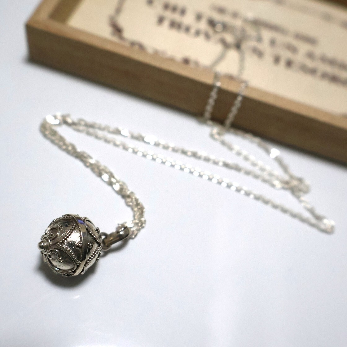 ガムランボールは優雅な音色で心を魅了し、シルバーの輝きが調和と幸福を奏でます。高品質なシルバーで製作され、ガムランボールの意味深い響きが日常のスタイルにエレガントなアクセントを添えます。新しい日々に音楽の調べと幸福を感じるアクセサリーです。