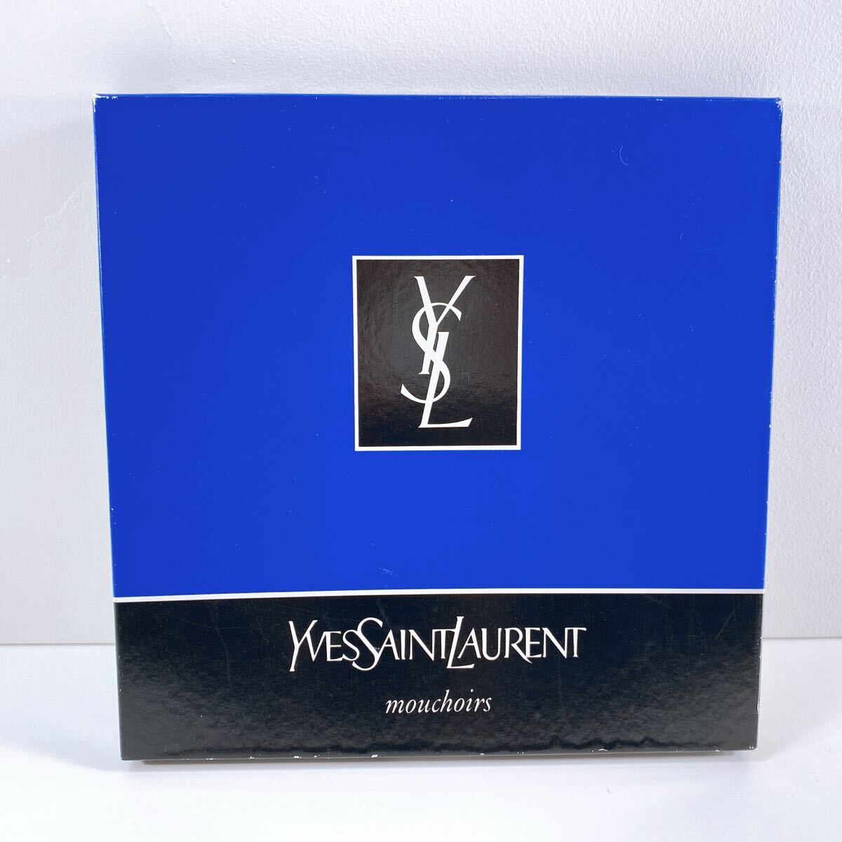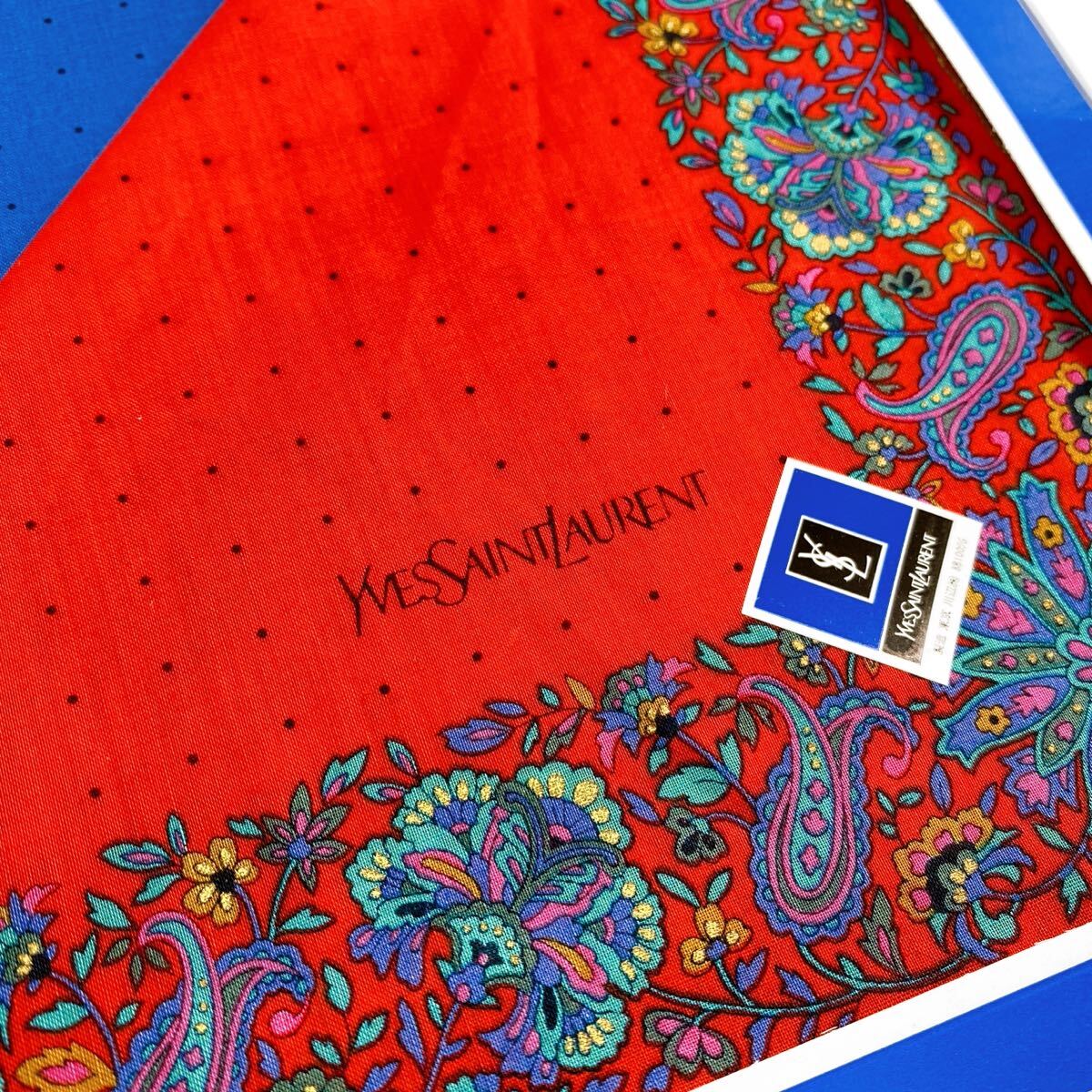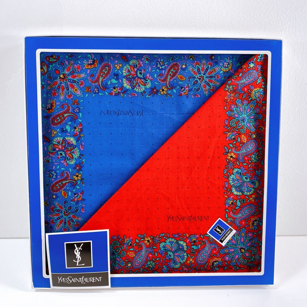 358【新品未使用】Yves Saint Laurent イヴサンローラン ペイズリー柄 ハンカチ レッド/ブルー 綿100% 製造 東京川辺(株) 自宅保管品